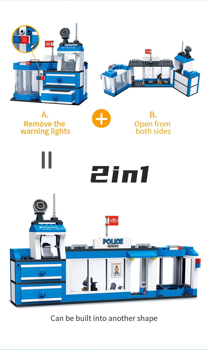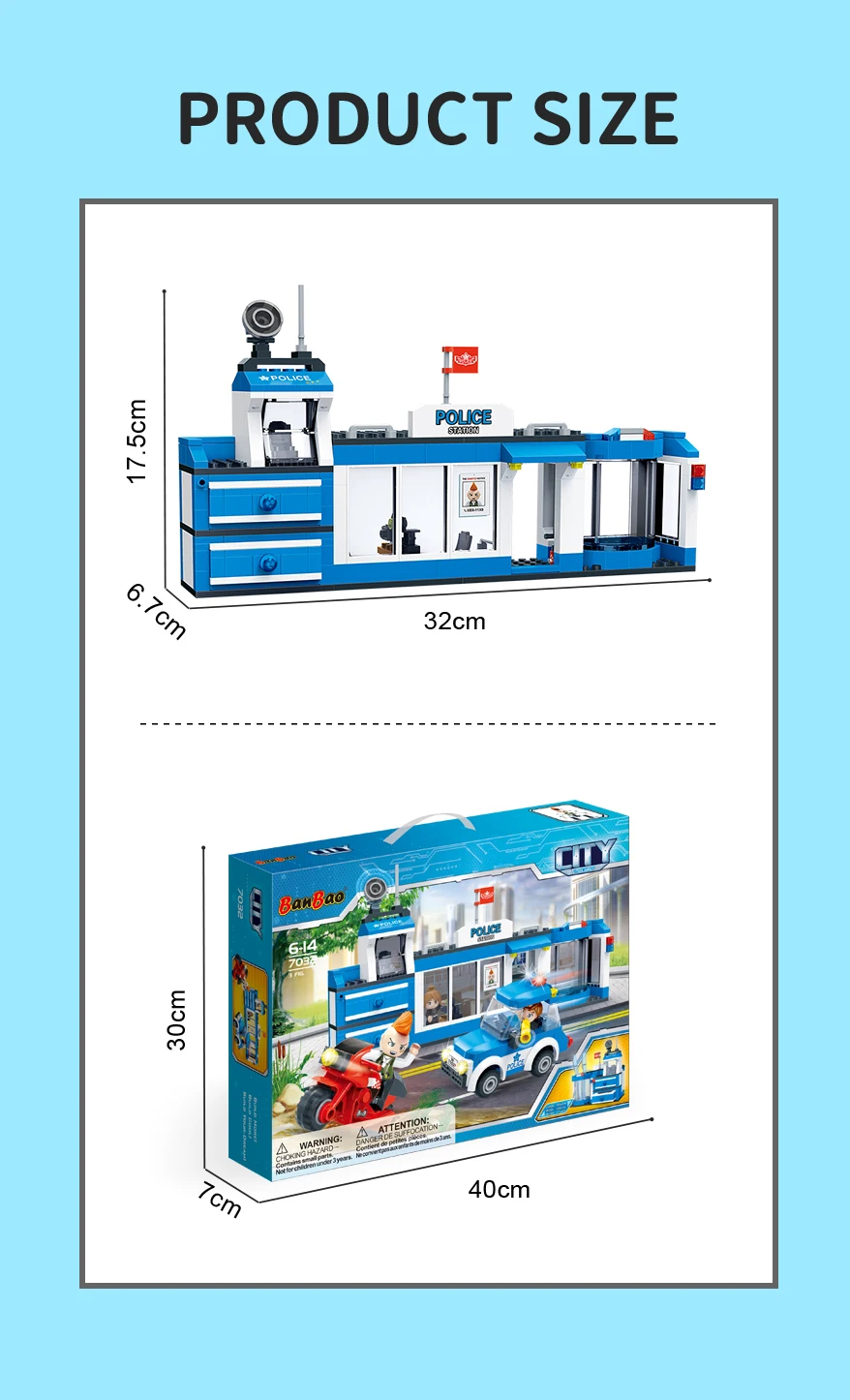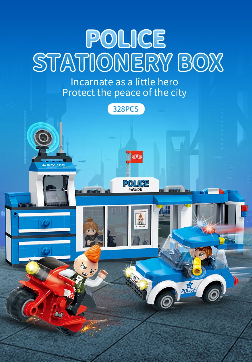 Designer "BanBao City" (328 elm.) A small police station Build your own unique world with the BanBao construction set! This exciting building block toy brings unlimited creativity and possibilities to your home. Each piece has its own specific place, and the step-by-step guide helps you create the perfect character or unusual artifact. From epic battle robots to exciting heroes and incredible worlds, BanBao allows you to turn any idea into into reality. This construction set is not only an entertaining toy, but also a unique opportunity for your child to develop spatial thinking, creativity and logic skills, during which they will enjoy every moment of construction and be proud of their own masterpiece. With BanBao, your possibilities are endless - let your imagination run wild!