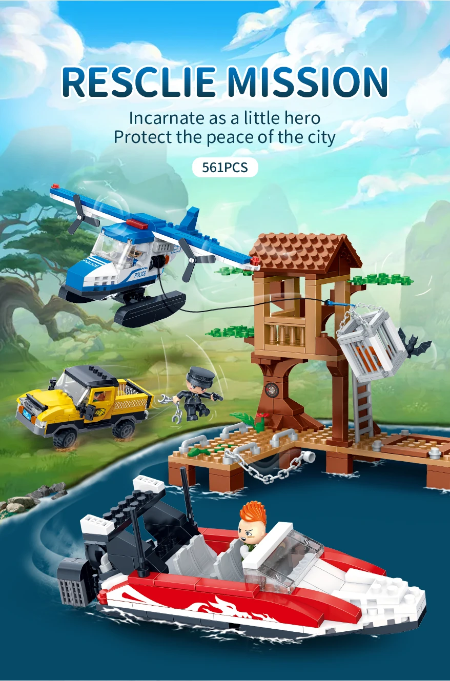 Designer "BanBao City" (561 elm.) Rescue mission Build your own unique world with the BanBao construction set! This exciting building block toy brings unlimited creativity and possibilities to your home. Each piece has its own specific place, and the step-by-step guide helps you create the perfect character or unusual artifact. From epic battle robots to exciting heroes and incredible worlds, BanBao allows you to turn any idea into into reality. This construction set is not only an entertaining toy, but also a unique opportunity for your child to develop spatial thinking, creativity and logic skills, during which they will enjoy every moment of construction and be proud of their own masterpiece. With BanBao, your possibilities are endless - let your imagination run wild!