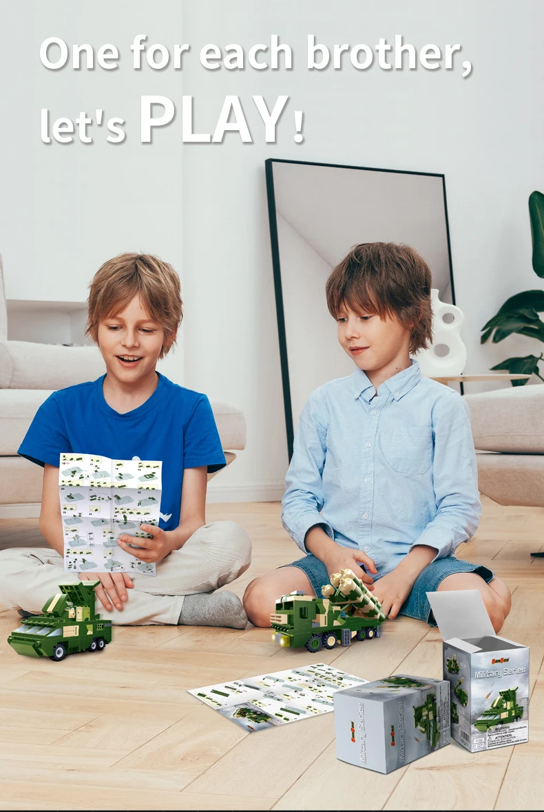 *Конструктор "Армія" (174 елм.) Ракетний комплекс / BanBao Build your own unique world with the BanBao construction set! This exciting building block toy brings unlimited creativity and possibilities to your home. Each piece has its own specific place, and the step-by-step guide helps you create the perfect character or unusual artifact. From epic battle robots to exciting heroes and incredible worlds, BanBao allows you to turn any idea into into reality. This construction set is not only an entertaining toy, but also a unique opportunity for your child to develop spatial thinking, creativity and logic skills, during which they will enjoy every moment of construction and be proud of their own masterpiece. With BanBao, your possibilities are endless - let your imagination run wild!