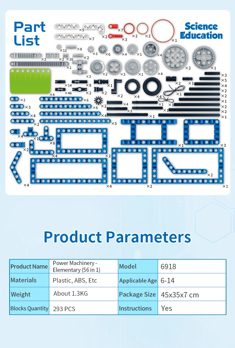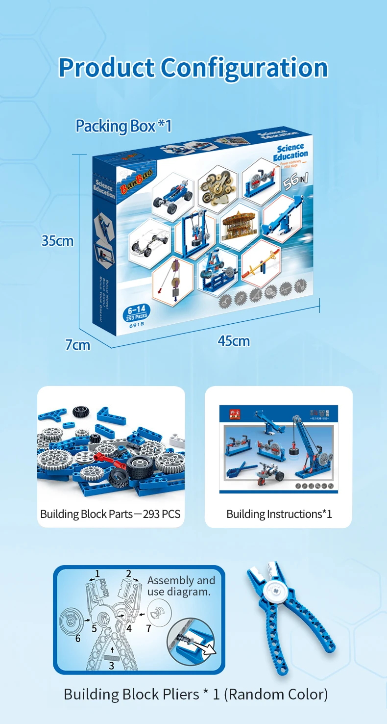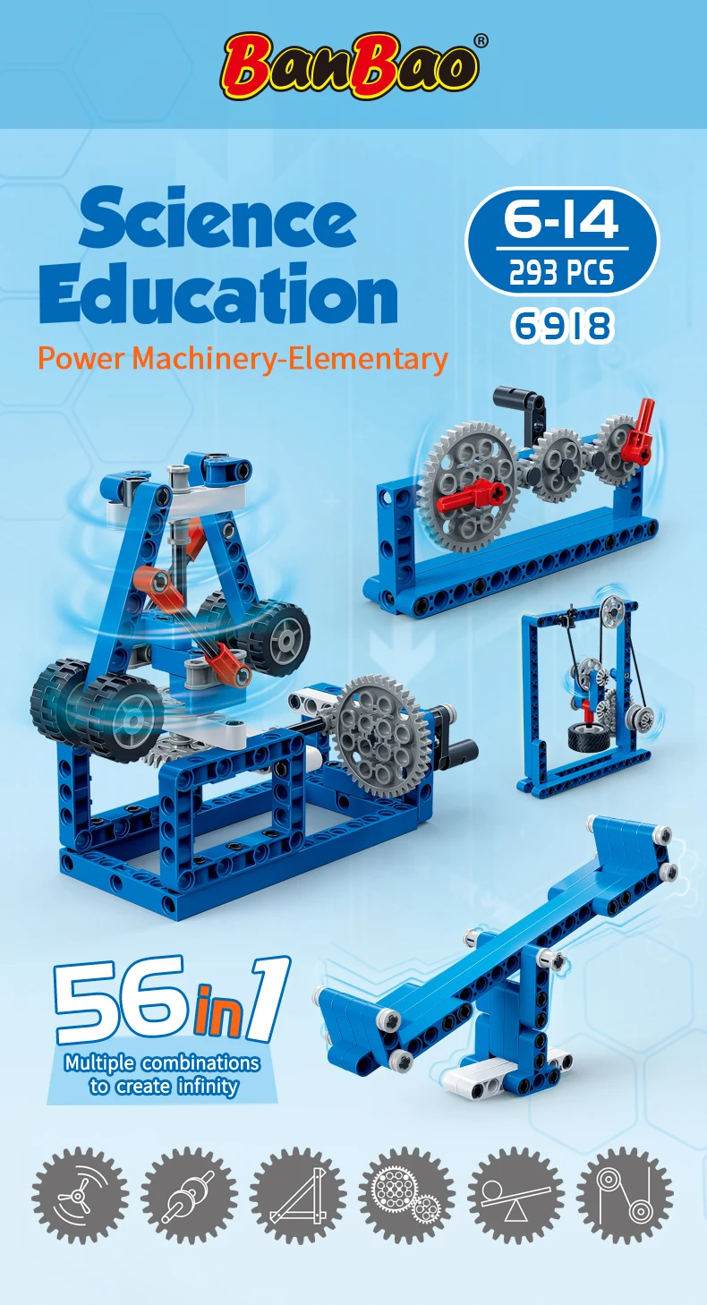 Construction set "Science" Simple mechanisms 56 in 1 Build your own unique world with the BanBao construction set! This exciting building block toy brings unlimited creativity and possibilities to your home. Each piece has its own specific place, and the step-by-step guide helps you create the perfect character or unusual artifact. From epic battle robots to exciting heroes and incredible worlds, BanBao allows you to turn any idea into into reality. This construction set is not only an entertaining toy, but also a unique opportunity for your child to develop spatial thinking, creativity and logic skills, during which they will enjoy every moment of construction and be proud of their own masterpiece. With BanBao, your possibilities are endless - let your imagination run wild!