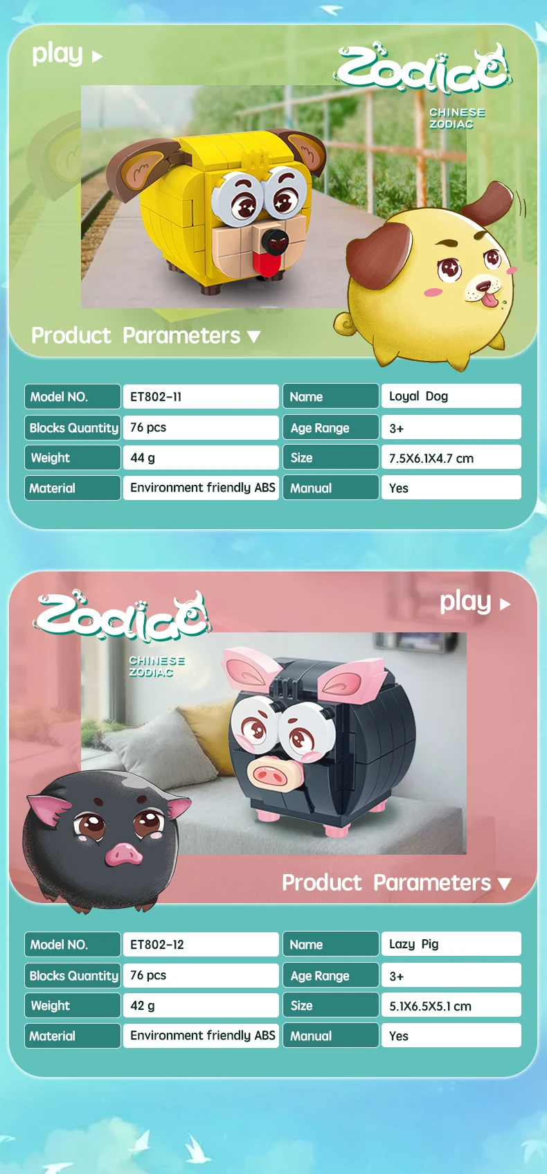 Construction set "Zodiac signs" (80 pieces) Dog Build your own unique world with the BanBao construction set! This exciting building block toy brings unlimited creativity and possibilities to your home. Each piece has its own specific place, and the step-by-step guide helps you create the perfect character or unusual artifact. From epic battle robots to exciting heroes and incredible worlds, BanBao allows you to turn any idea into into reality. This construction set is not only an entertaining toy, but also a unique opportunity for your child to develop spatial thinking, creativity and logic skills, during which they will enjoy every moment of construction and be proud of their own masterpiece. With BanBao, your possibilities are endless - let your imagination run wild!