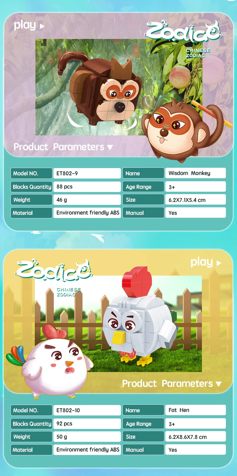 Construction set "Zodiac signs" (69 pieces) Tiger Build your own unique world with the BanBao construction set! This exciting building block toy brings unlimited creativity and possibilities to your home. Each piece has its own specific place, and the step-by-step guide helps you create the perfect character or unusual artifact. From epic battle robots to exciting heroes and incredible worlds, BanBao allows you to turn any idea into into reality. This construction set is not only an entertaining toy, but also a unique opportunity for your child to develop spatial thinking, creativity and logic skills, during which they will enjoy every moment of construction and be proud of their own masterpiece. With BanBao, your possibilities are endless - let your imagination run wild!