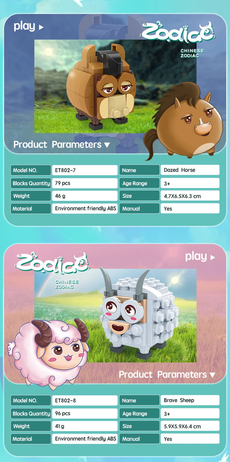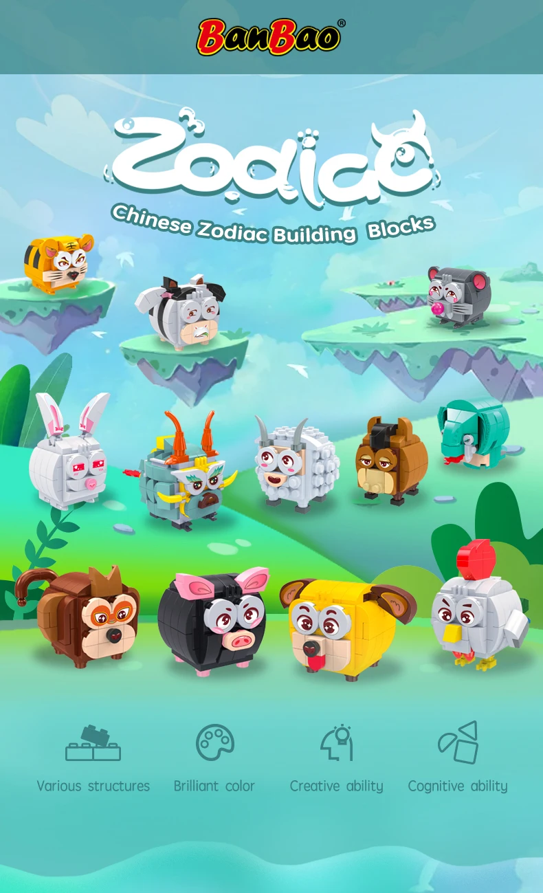 Construction set "Zodiac signs" (96 pieces) Sheep Build your own unique world with the BanBao construction set! This exciting building block toy brings unlimited creativity and possibilities to your home. Each piece has its own specific place, and the step-by-step guide helps you create the perfect character or unusual artifact. From epic battle robots to exciting heroes and incredible worlds, BanBao allows you to turn any idea into into reality. This construction set is not only an entertaining toy, but also a unique opportunity for your child to develop spatial thinking, creativity and logic skills, during which they will enjoy every moment of construction and be proud of their own masterpiece. With BanBao, your possibilities are endless - let your imagination run wild!