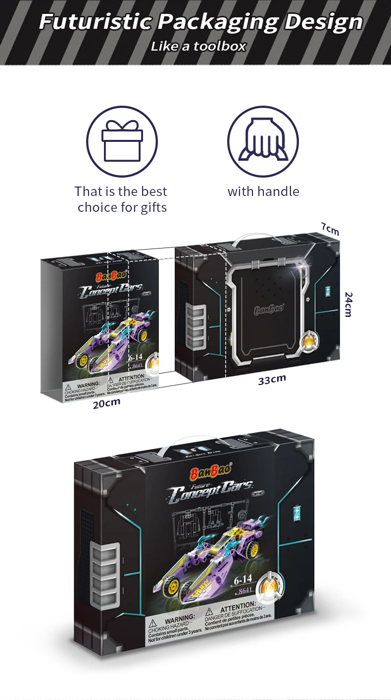 Construction set "Exclusive cars" (327 elm.) by Viteri Build your own unique world with the BanBao construction set! This exciting building block toy brings unlimited creativity and possibilities to your home. Each piece has its own specific place, and the step-by-step guide helps you create the perfect character or unusual artifact. From epic battle robots to exciting heroes and incredible worlds, BanBao allows you to turn any idea into into reality. This construction set is not only an entertaining toy, but also a unique opportunity for your child to develop spatial thinking, creativity and logic skills, during which they will enjoy every moment of construction and be proud of their own masterpiece. With BanBao, your possibilities are endless - let your imagination run wild!