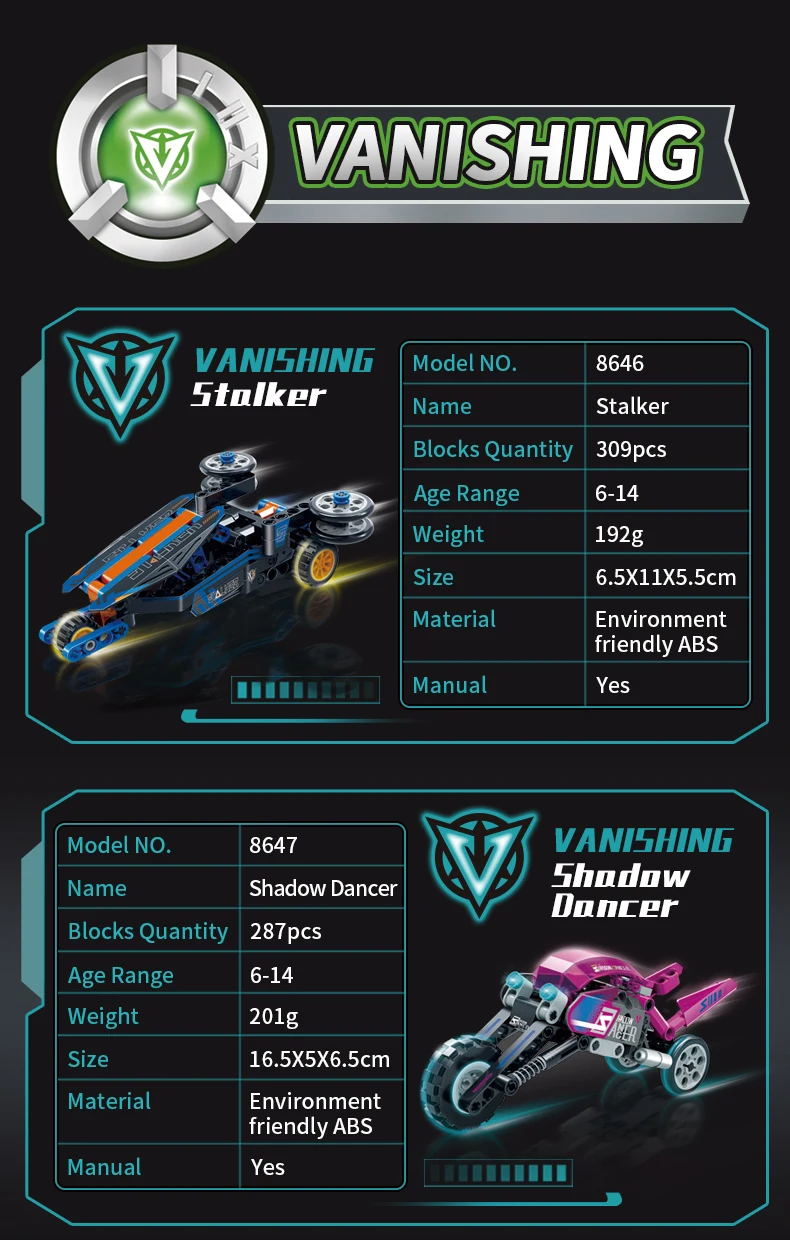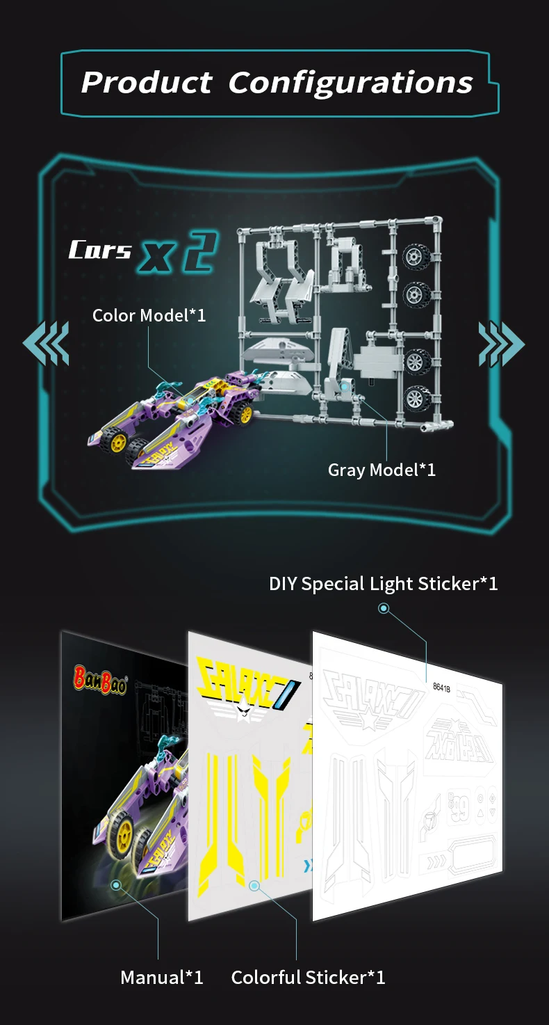 Construction set "Exclusive cars" (287 elm.) Dance of shadows Build your own unique world with the BanBao construction set! This exciting building block toy brings unlimited creativity and possibilities to your home. Each piece has its own specific place, and the step-by-step guide helps you create the perfect character or unusual artifact. From epic battle robots to exciting heroes and incredible worlds, BanBao allows you to turn any idea into into reality. This construction set is not only an entertaining toy, but also a unique opportunity for your child to develop spatial thinking, creativity and logic skills, during which they will enjoy every moment of construction and be proud of their own masterpiece. With BanBao, your possibilities are endless - let your imagination run wild!