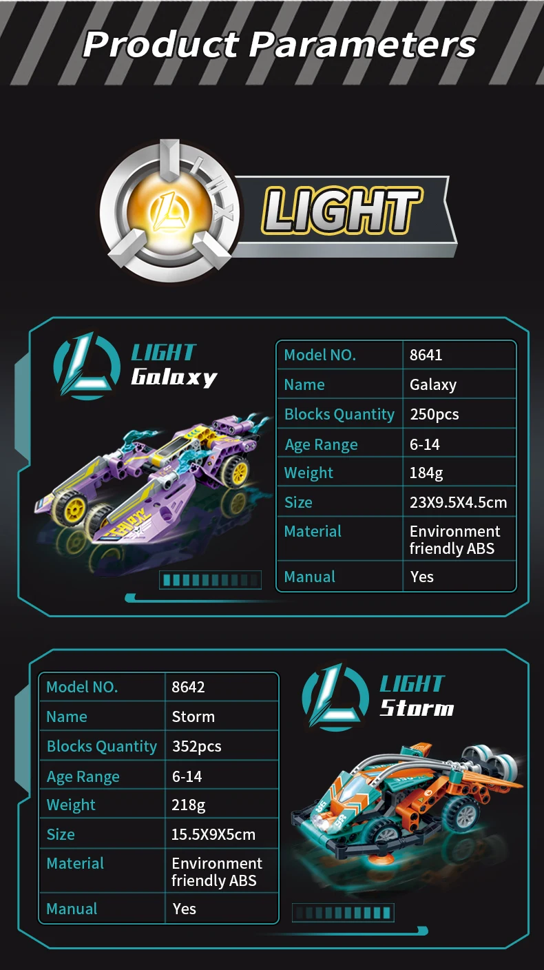 Construction set "Super car" (138 pieces) Lightning The BanBao 6966 Racing Car Construction Set is an exciting opportunity for children from 5 years old to unleash their creativity and engineering potential. With 138 parts made of high quality ABS plastic, this set allows little builders to create not just a racing car, but a real masterpiece of engineering. Each part has a special pull-off function, which makes it easy to assemble and disassemble the model. Playing with