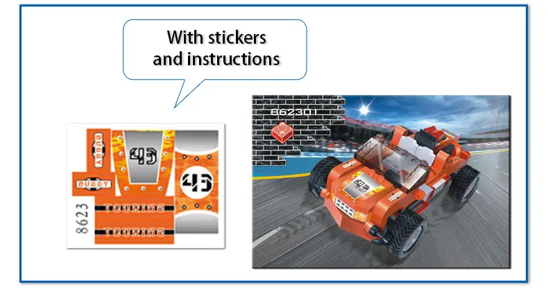 Construction set "Exclusive cars" (352 elm.) Zipper Build your own unique world with the BanBao construction set! This exciting building block toy brings unlimited creativity and possibilities to your home. Each piece has its own specific place, and the step-by-step guide helps you create the perfect character or unusual artifact. From epic battle robots to exciting heroes and incredible worlds, BanBao allows you to turn any idea into into reality. This construction set is not only an entertaining toy, but also a unique opportunity for your child to develop spatial thinking, creativity and logic skills, during which they will enjoy every moment of construction and be proud of their own masterpiece. With BanBao, your possibilities are endless - let your imagination run wild!