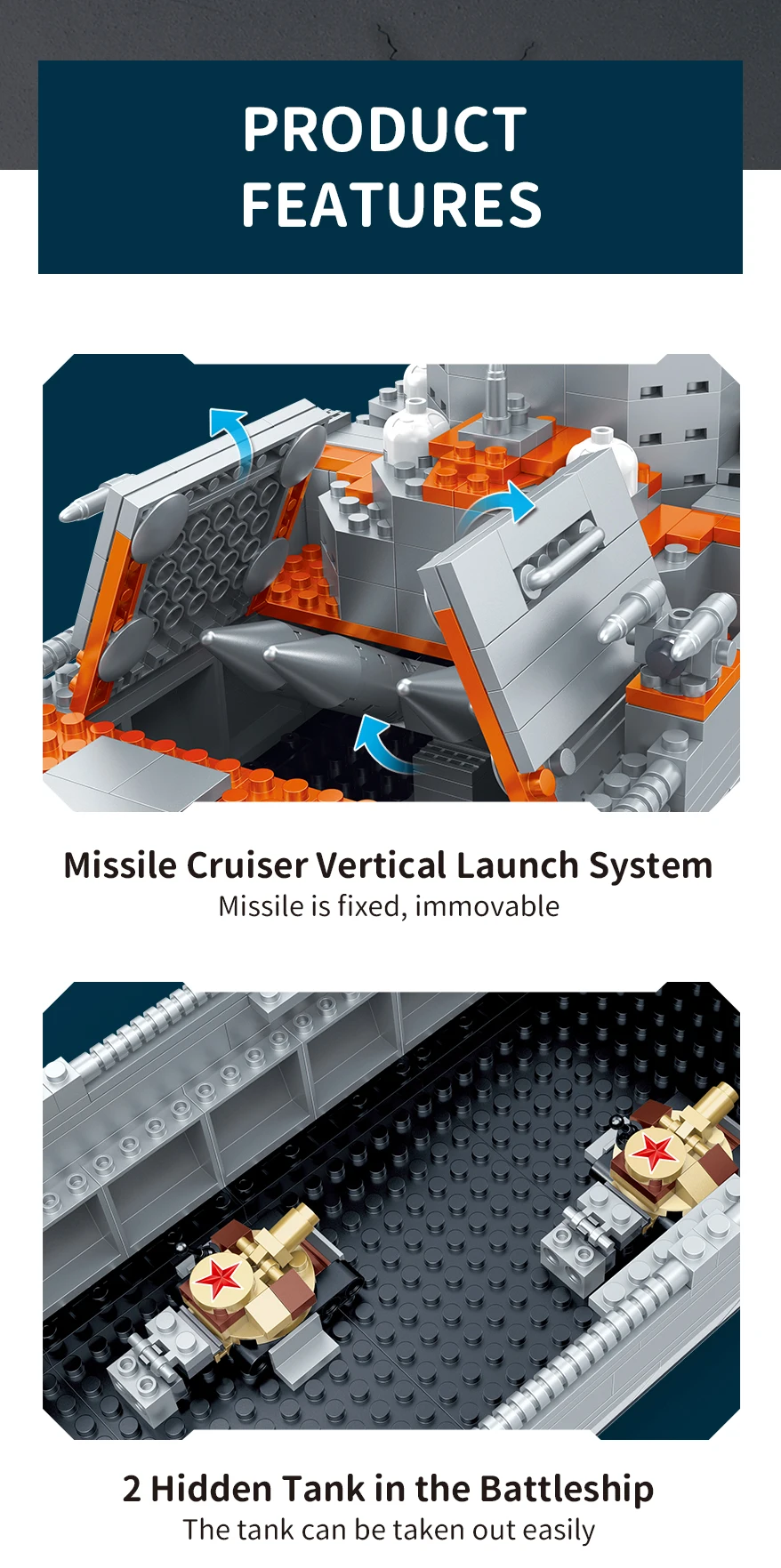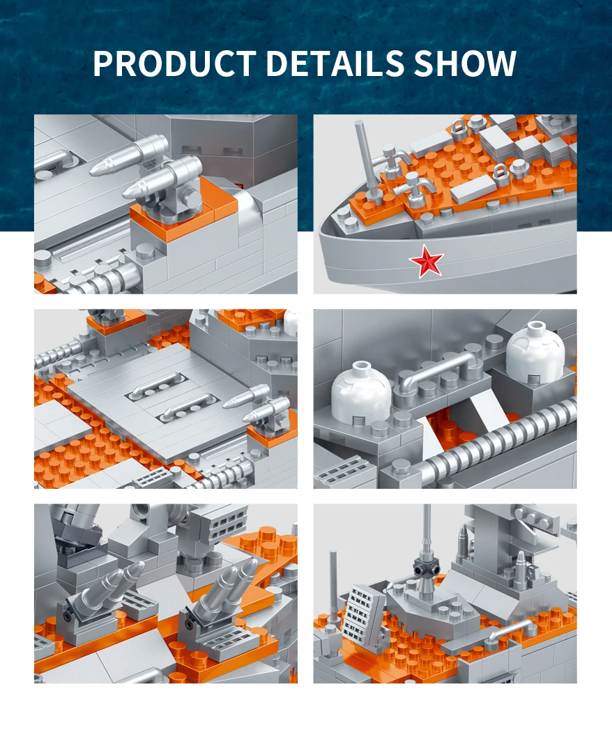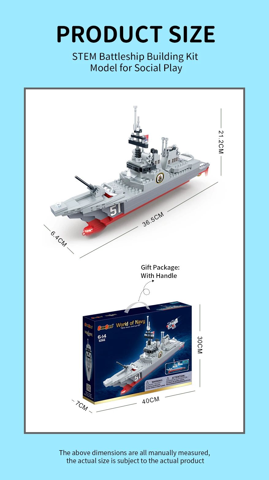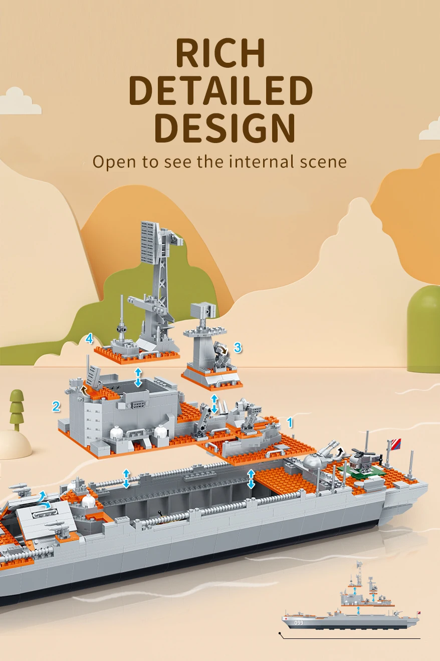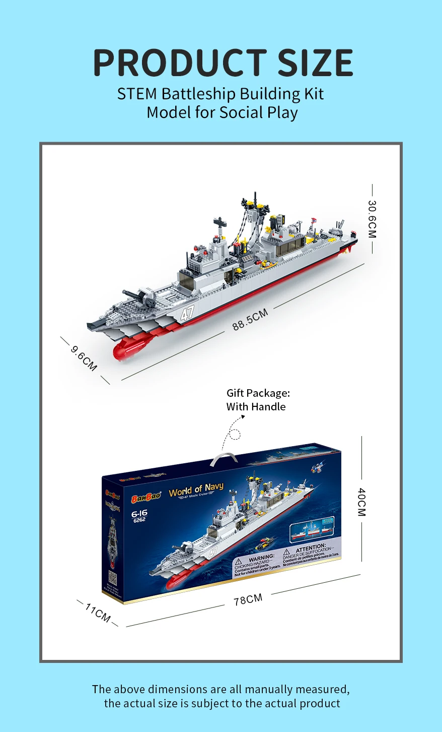 Designer "Fleet" (471 elm.) Destroyer №51 Build your own unique world with the BanBao construction set! This exciting building block toy brings unlimited creativity and possibilities to your home. Each piece has its own specific place, and the step-by-step guide helps you create the perfect character or unusual artifact. From epic battle robots to exciting heroes and incredible worlds, BanBao allows you to turn any idea into into reality. This construction set is not only an entertaining toy, but also a unique opportunity for your child to develop spatial thinking, creativity and logic skills, during which they will enjoy every moment of construction and be proud of their own masterpiece. With BanBao, your possibilities are endless - let your imagination run wild!