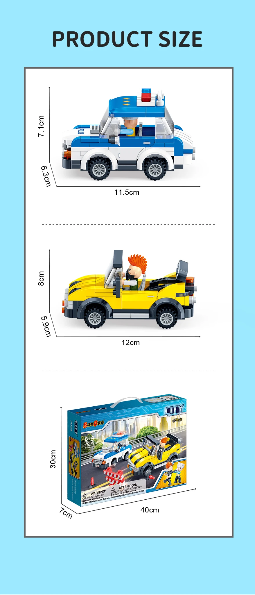 Designer "BanBao City" (268 pcs) Escape Build your own unique world with the BanBao construction set! This exciting building block toy brings unlimited creativity and possibilities to your home. Each piece has its own specific place, and the step-by-step guide helps you create the perfect character or unusual artifact. From epic battle robots to exciting heroes and incredible worlds, BanBao allows you to turn any idea into into reality. This construction set is not only an entertaining toy, but also a unique opportunity for your child to develop spatial thinking, creativity and logic skills, during which they will enjoy every moment of construction and be proud of their own masterpiece. With BanBao, your possibilities are endless - let your imagination run wild!