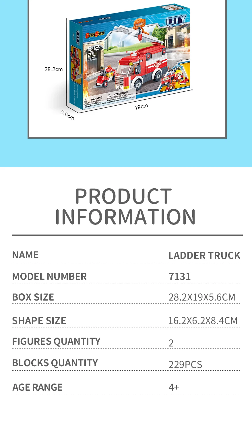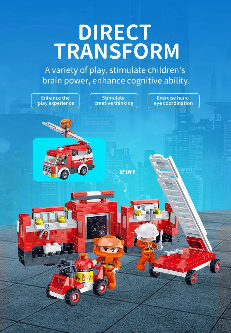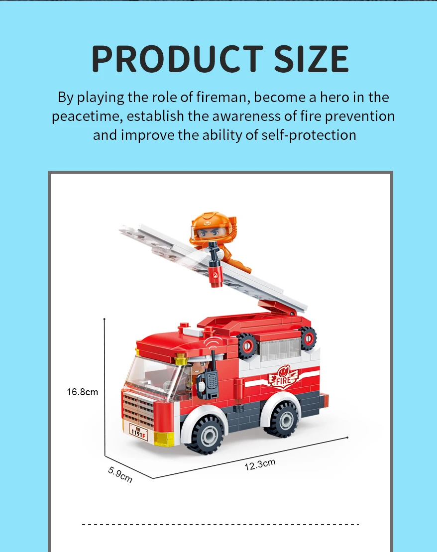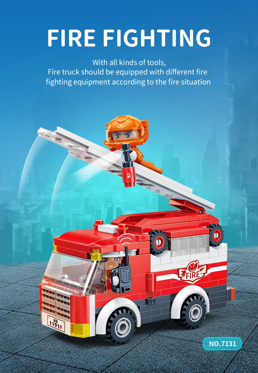 Designer "BanBao City" (229 elm.) Fire truck Build your own unique world with the BanBao construction set! This exciting building block toy brings unlimited creativity and possibilities to your home. Each piece has its own specific place, and the step-by-step guide helps you create the perfect character or unusual artifact. From epic battle robots to exciting heroes and incredible worlds, BanBao allows you to turn any idea into into reality. This construction set is not only an entertaining toy, but also a unique opportunity for your child to develop spatial thinking, creativity and logic skills, during which they will enjoy every moment of construction and be proud of their own masterpiece. With BanBao, your possibilities are endless - let your imagination run wild!