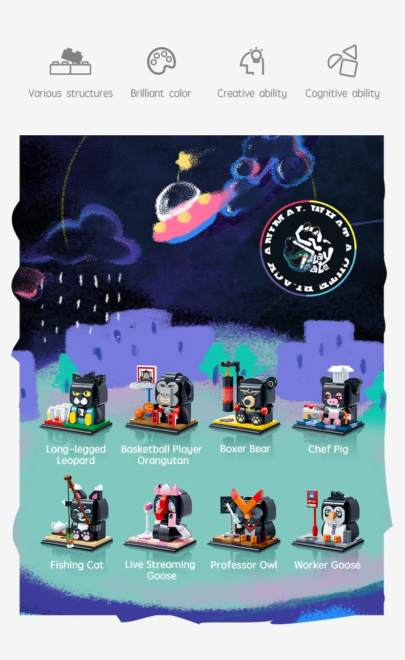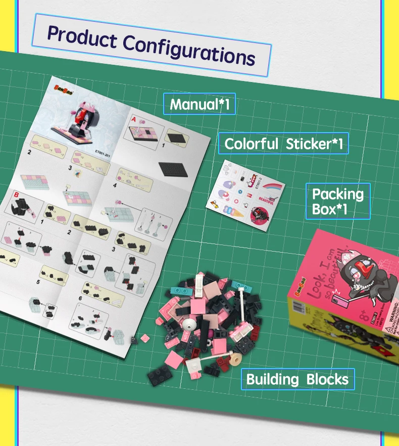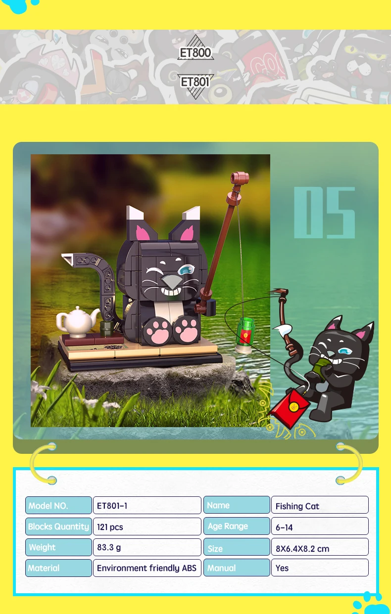Construction set "Character" (140 pieces) Cat fisherman Build your own unique world with the BanBao construction set! This exciting building block toy brings unlimited creativity and possibilities to your home. Each piece has its own specific place, and the step-by-step guide helps you create the perfect character or unusual artifact. From epic battle robots to exciting heroes and incredible worlds, BanBao allows you to turn any idea into into reality. This construction set is not only an entertaining toy, but also a unique opportunity for your child to develop spatial thinking, creativity and logic skills, during which they will enjoy every moment of construction and be proud of their own masterpiece. With BanBao, your possibilities are endless - let your imagination run wild!