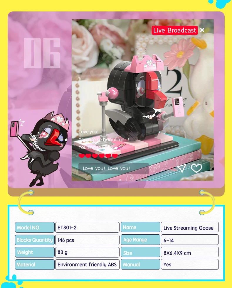 Construction set "Character" (146 pieces) Goose blogger Build your own unique world with the BanBao construction set! This exciting building block toy brings unlimited creativity and possibilities to your home. Each piece has its own specific place, and the step-by-step guide helps you create the perfect character or unusual artifact. From epic battle robots to exciting heroes and incredible worlds, BanBao allows you to turn any idea into into reality. This construction set is not only an entertaining toy, but also a unique opportunity for your child to develop spatial thinking, creativity and logic skills, during which they will enjoy every moment of construction and be proud of their own masterpiece. With BanBao, your possibilities are endless - let your imagination run wild!