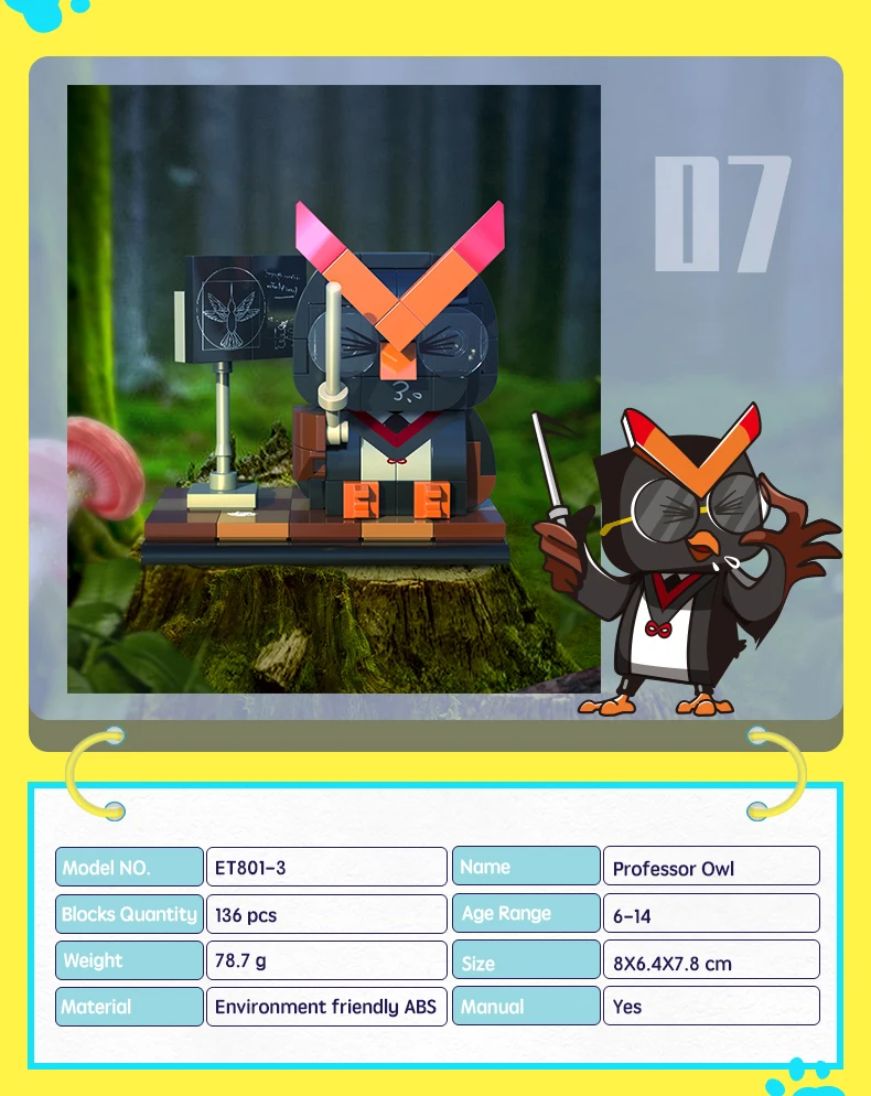 *Конструктор "Персонаж" (151 елм.) Сова професор / BanBao Build your own unique world with the BanBao construction set! This exciting building block toy brings unlimited creativity and possibilities to your home. Each piece has its own specific place, and the step-by-step guide helps you create the perfect character or unusual artifact. From epic battle robots to exciting heroes and incredible worlds, BanBao allows you to turn any idea into into reality. This construction set is not only an entertaining toy, but also a unique opportunity for your child to develop spatial thinking, creativity and logic skills, during which they will enjoy every moment of construction and be proud of their own masterpiece. With BanBao, your possibilities are endless - let your imagination run wild!