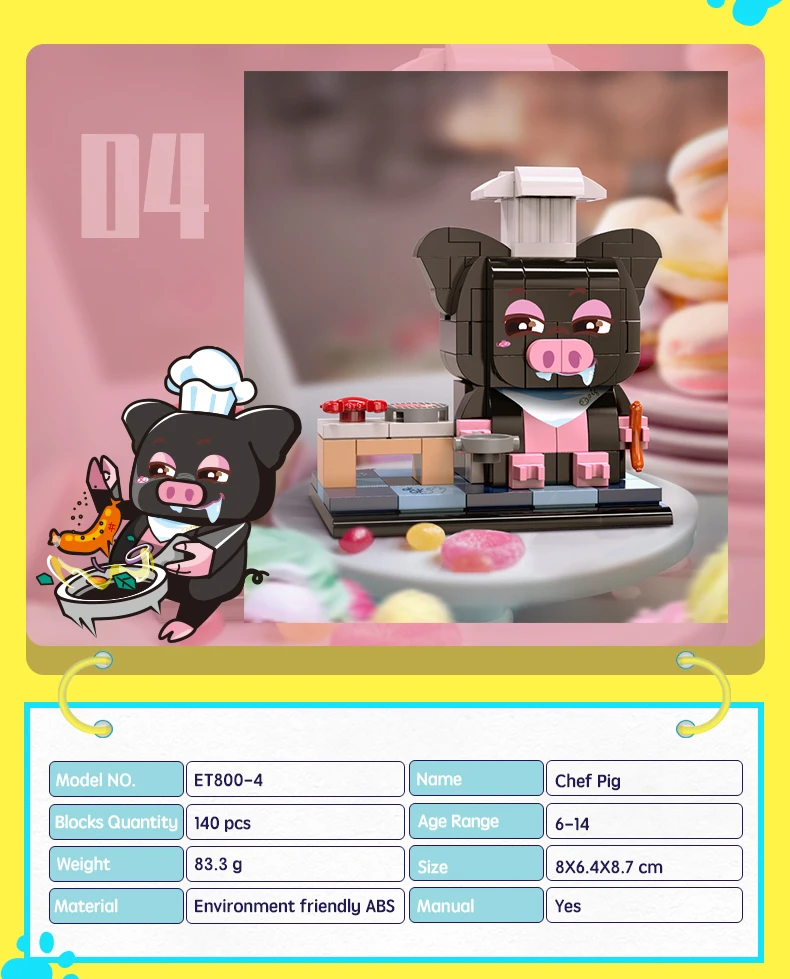 Construction set "Character" (140 pieces) Pig master chef Build your own unique world with the BanBao construction set! This exciting building block toy brings unlimited creativity and possibilities to your home. Each piece has its own specific place, and the step-by-step guide helps you create the perfect character or unusual artifact. From epic battle robots to exciting heroes and incredible worlds, BanBao allows you to turn any idea into into reality. This construction set is not only an entertaining toy, but also a unique opportunity for your child to develop spatial thinking, creativity and logic skills, during which they will enjoy every moment of construction and be proud of their own masterpiece. With BanBao, your possibilities are endless - let your imagination run wild!
