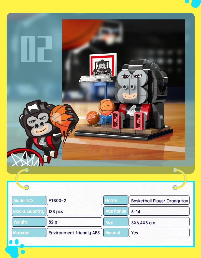 *Конструктор "Персонаж" (138 елм.) Мавпочка баскетболіст / BanBao Build your own unique world with the BanBao construction set! This exciting building block toy brings unlimited creativity and possibilities to your home. Each piece has its own specific place, and the step-by-step guide helps you create the perfect character or unusual artifact. From epic battle robots to exciting heroes and incredible worlds, BanBao allows you to turn any idea into into reality. This construction set is not only an entertaining toy, but also a unique opportunity for your child to develop spatial thinking, creativity and logic skills, during which they will enjoy every moment of construction and be proud of their own masterpiece. With BanBao, your possibilities are endless - let your imagination run wild!