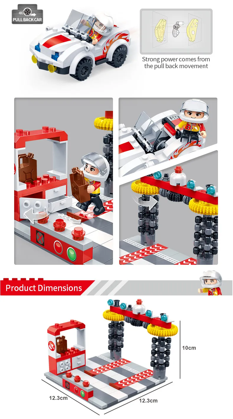 Designer "Speed Race" (217 elm.) Tire inflation zone Bright plastic designer BanBao "Speed Racing" The tire inflation zone will attract your child's attention and will not let him get bored. With the help of the elements of the designer, the child will be able to assemble a real area of inflating tires. The set includes 1 figurine, stickers and colorful assembly instructions. The child will be able to play for hours with this designer, coming up with different stories. Assembling the constructor, the child develops imagination, perseverance, fine motor skills, spatial and logical thinking.