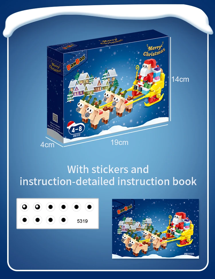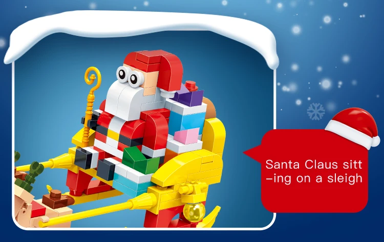 Construction set "New Year" Santa on a sled Build your own unique world with the BanBao construction set! This exciting building block toy brings unlimited creativity and possibilities to your home. Each piece has its own specific place, and the step-by-step guide helps you create the perfect character or unusual artifact. From epic battle robots to exciting heroes and incredible worlds, BanBao allows you to turn any idea into into reality. This construction set is not only an entertaining toy, but also a unique opportunity for your child to develop spatial thinking, creativity and logic skills, during which they will enjoy every moment of construction and be proud of their own masterpiece. With BanBao, your possibilities are endless - let your imagination run wild!