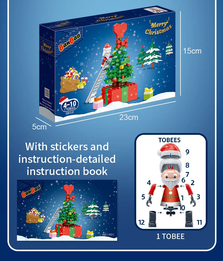 Construction set "Christmas tree" Build your own unique world with the BanBao construction set! This exciting building block toy brings unlimited creativity and possibilities to your home. Each piece has its own specific place, and the step-by-step guide helps you create the perfect character or unusual artifact. From epic battle robots to exciting heroes and incredible worlds, BanBao allows you to turn any idea into into reality. This construction set is not only an entertaining toy, but also a unique opportunity for your child to develop spatial thinking, creativity and logic skills, during which they will enjoy every moment of construction and be proud of their own masterpiece. With BanBao, your possibilities are endless - let your imagination run wild!