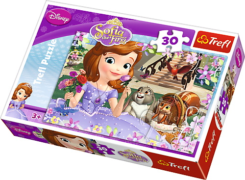Пазлы - (30 Элм.) - "Розы" / Дисней София Прекрасная                                                     Пазлы 30 элементов с героями сериала «София Прекрасная». После расстановки будет создана картинка размером 27х20 см. Высокое качество, насыщенность цвета и безопасное составления обеспечивается каландровым светоотражающим бумагой, покрытой экологическими пищевыми красками.  |
