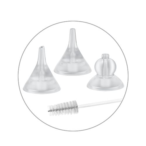 Вбудований акумулятор, який можна заряджати за допомогою сучасного роз'єму USB-C. Кабель в комплекті. Тривалий час роботи означає, що аспіратор готовий у будь-який момент. КОЛЬОРОВЕ ПІДСВІЧУВАННЯ ТА МЕЛОДІЇ Вбудовані заспокійливі звуки та світло, що змінює колір. Мелодії знімають напругу, а м'яке світло створює заспокійливу атмосферу. 3 М'ЯКІ СИЛІКОНОВІ НАСАДКИ