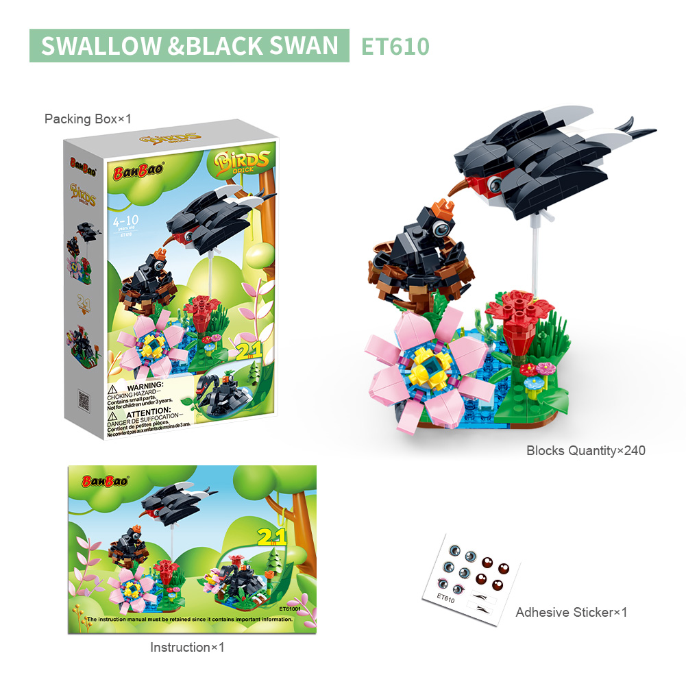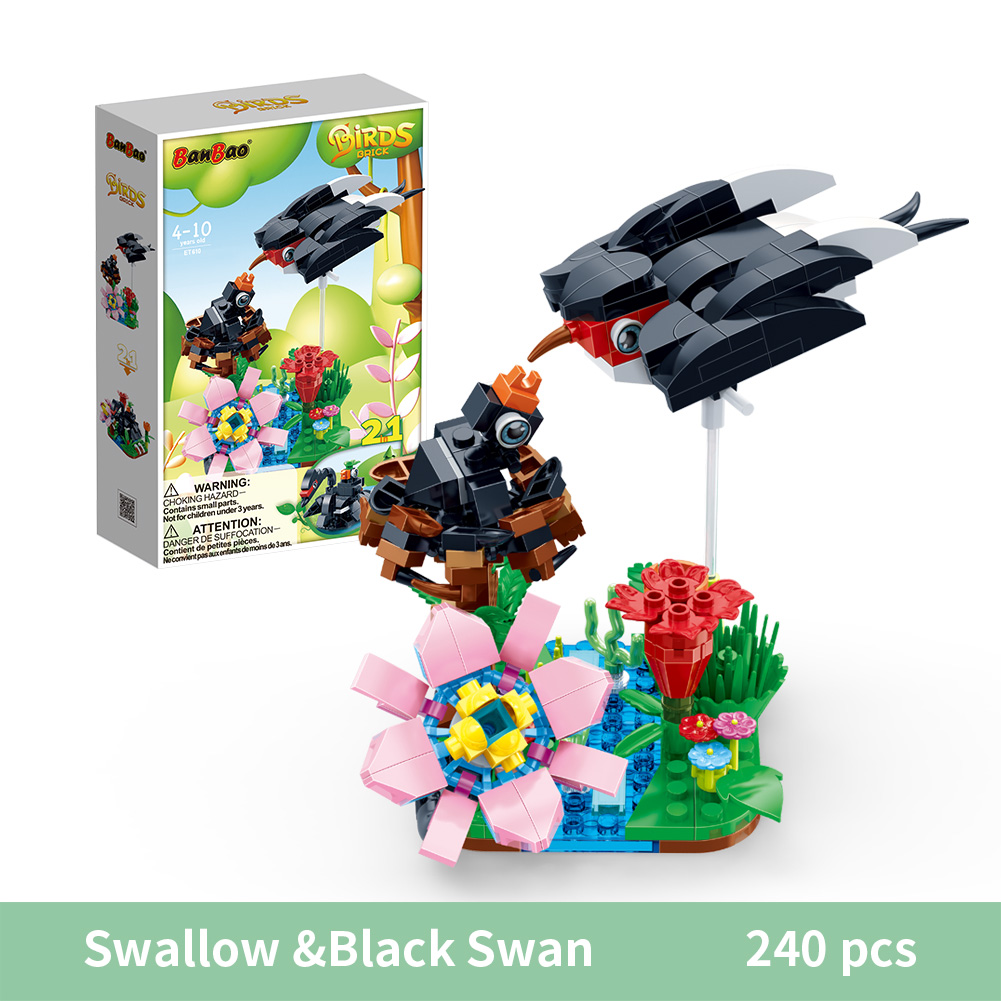 Конструктор "Пташки" (240 елм.) 2 в 1:Чорний лебідь/Ластівка/BanBao Яскраві набори дозволяють дітям власноруч створити улюблених птахів. Деталі легко з’єднуються, тож дитина із задоволенням збиратиме конструктор знову і знову.