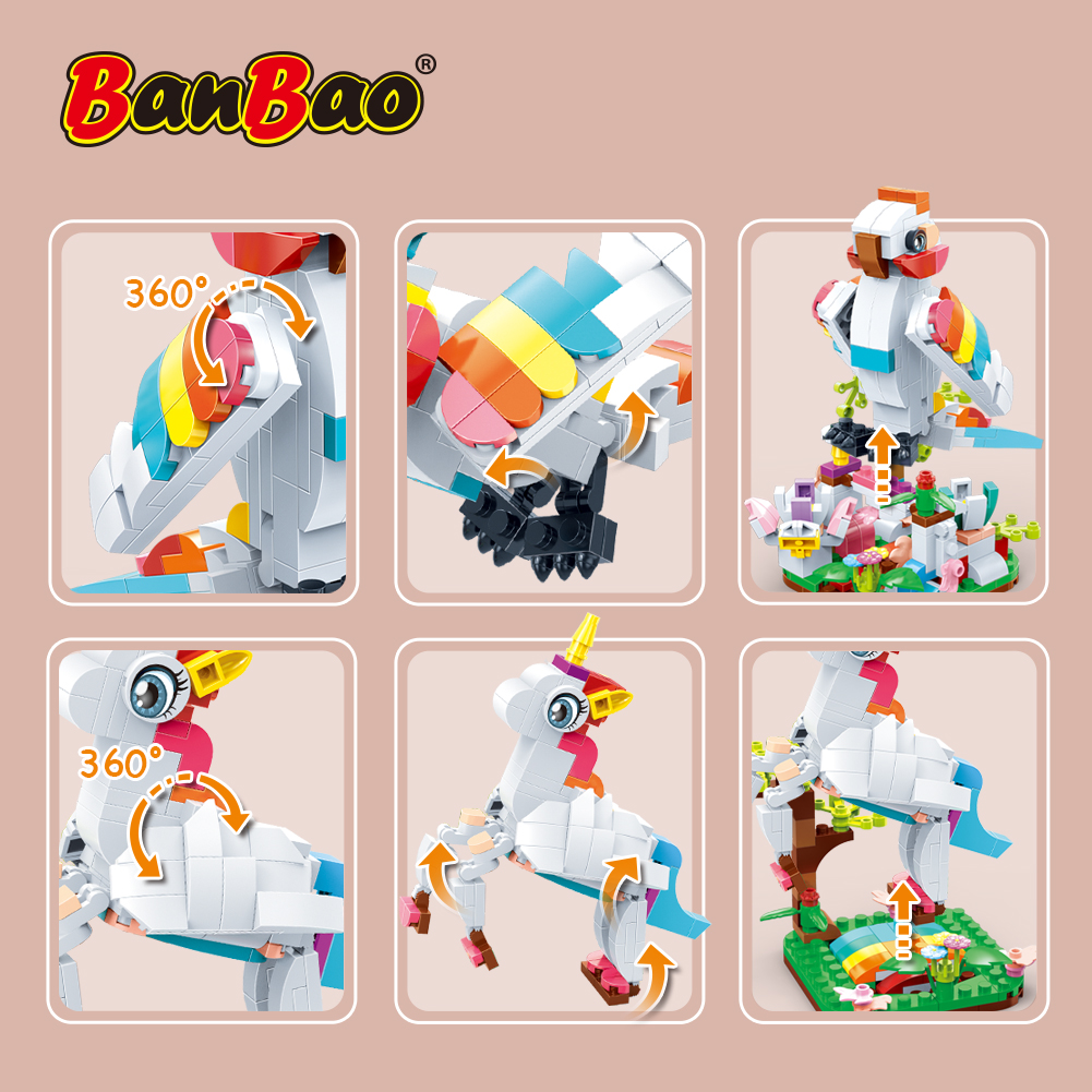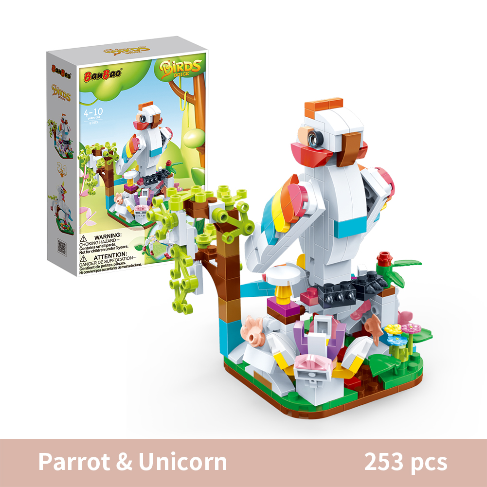 Конструктор "Пташки" (253 елм.) 2 в 1:Папуга/Єдиноріг/BanBao Яскраві набори дозволяють дітям власноруч створити улюблених птахів. Деталі легко з’єднуються, тож дитина із задоволенням збиратиме конструктор знову і знову.