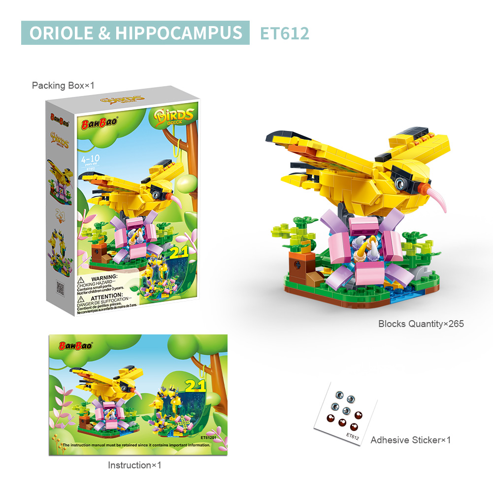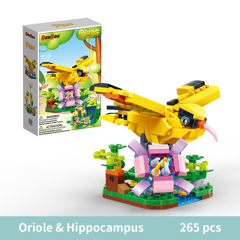 Конструктор "Пташки" (265 елм.) 2 в 1:Іволга/Морський коник/BanBao Яскраві набори дозволяють дітям власноруч створити улюблених птахів. Деталі легко з’єднуються, тож дитина із задоволенням збиратиме конструктор знову і знову.