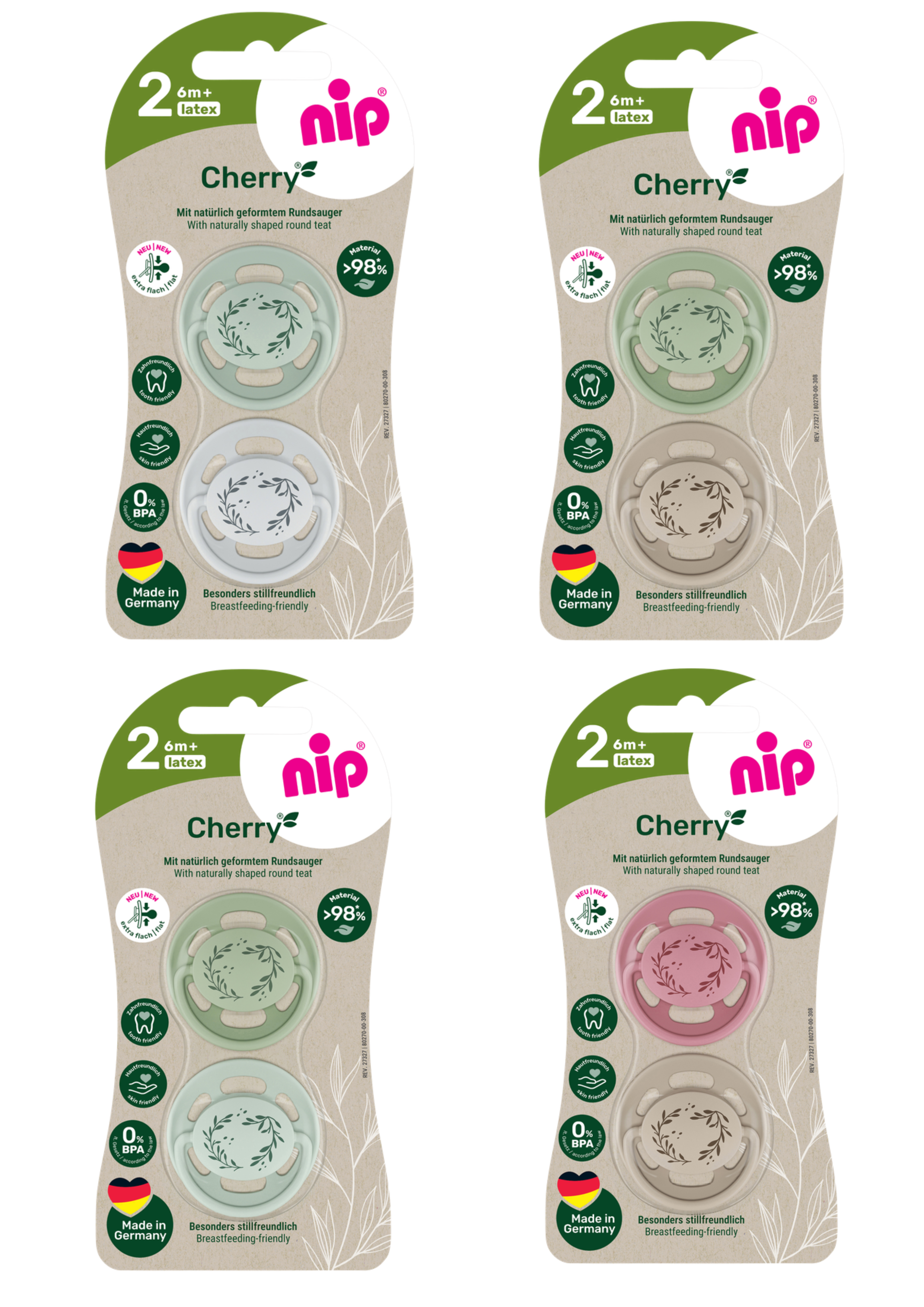Пустушки круглі "Вишенька "розмір 2 /(зелена/сіра) (латекс) (від 6 місяців),(2 шт) / NIP Представлений у розмірах 1 (0-6 місяців) і 2 (від 6 місяців). |