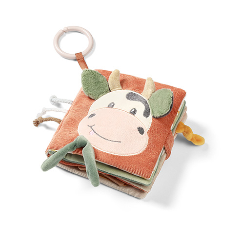 Розвиваюча м'яка книжечка "Корівка Бінго"(15*15см) /"Babyono" М’яка сенсорна книжка "Корівка Бінго" перенесе малечу на барвисту ферму, де на неї чекає багато сюрпризів.Це чудова інтерактивна іграшка для немовлят, яка розвиває їхні почуття та дрібну моторику. Приємні матеріали та різноманітні текстури заохочують до дослідження, а цікаві форми пробуджують уяву та стимулюють зір. Захоплива книжка має шелестячі елементи, які видають цікаві звуки при натисканні, брязкальце - яке хочеться потрусити та дзеркальце для пошуку власного відображення. Барвисті стрічки допомагають розвивати хапальний рефлекс. Іграшку можна повісити на ліжечко, коляску або автокрісло. Це чудова розвага та навчання одночасно!