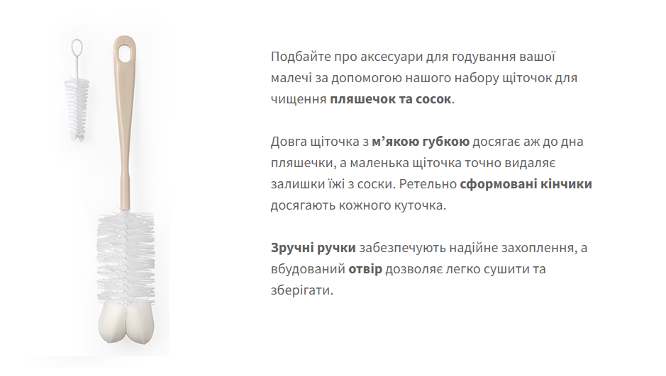 Йоршики (набір) для миття пляшок з зміною ручки (Бежевий) /"Babyono"