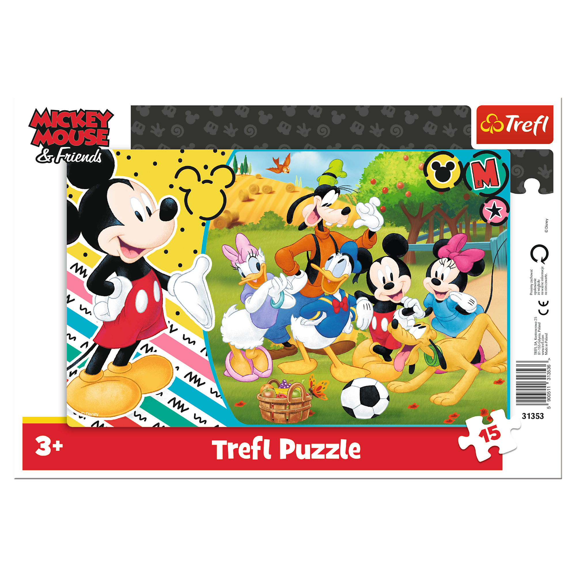 Пазли - (15 елм. Рамкою) - "Відпочинок" / Дісней: Міккі Маус Навчальні пазли для дітей молодшого віку з персонажами Дісней: Міккі Маус. Пазл складається з 15 елементів, поміщених в декоративну рамку, утворюючи дуже гарну цілу картинку. Виразні кольори і простий візерунок ідеально підходять навичкам дитини. |