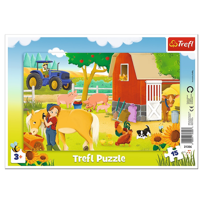 Пазли - (15 елм. Рамкою) - "На фермі" Пазл складається з 15 елементів, поміщених в декоративну рамку, утворюючи дуже гарну цілу картинку. Виразні кольори і простий візерунок ідеально підходять навичкам дитини. Розмір складеної картинки 258х159 |