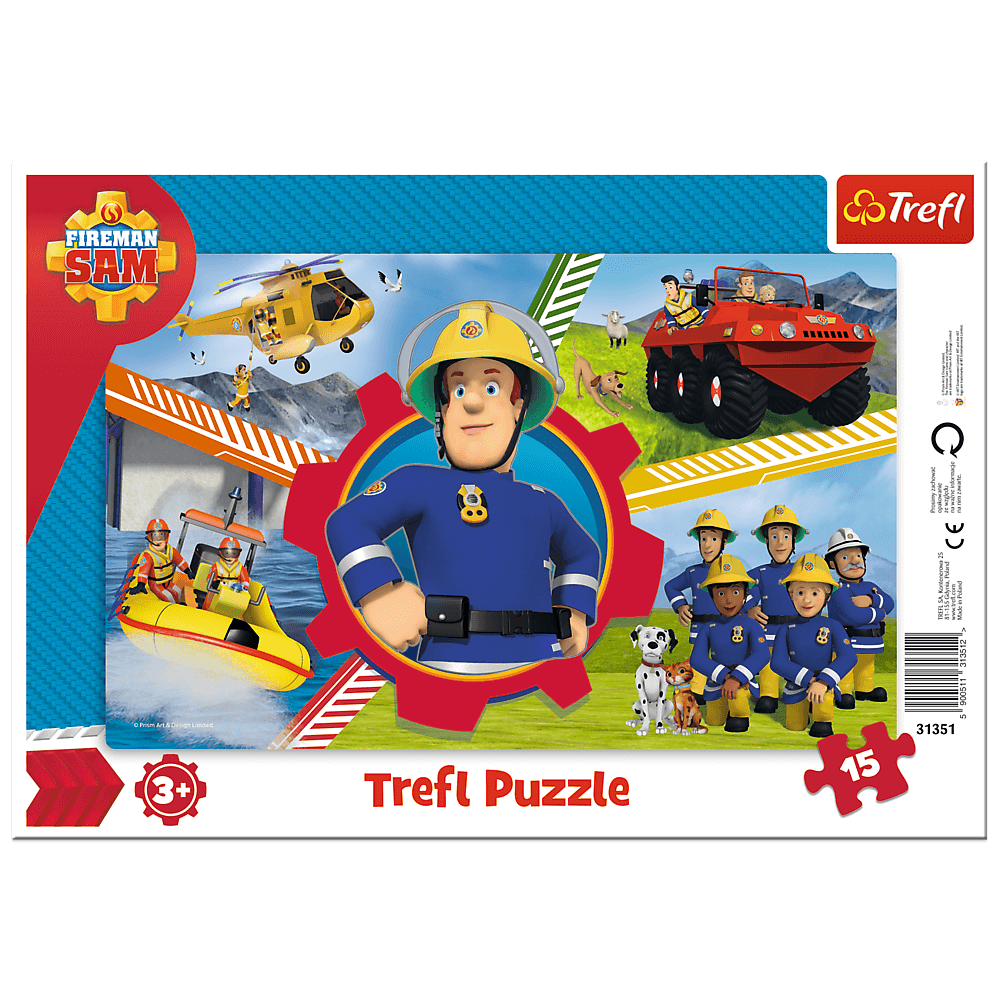 Пазли - (15 елм. Рамкою) - "День пожежника" / Пожежник Сем Навчальні пазли для дітей молодшого віку з персонажами "Пожежник Сем". Пазл складається з 15 елементів, поміщених в декоративну рамку, утворюючи дуже гарну цілу картинку. Виразні кольори і простий візерунок ідеально підходять навичкам дитини.