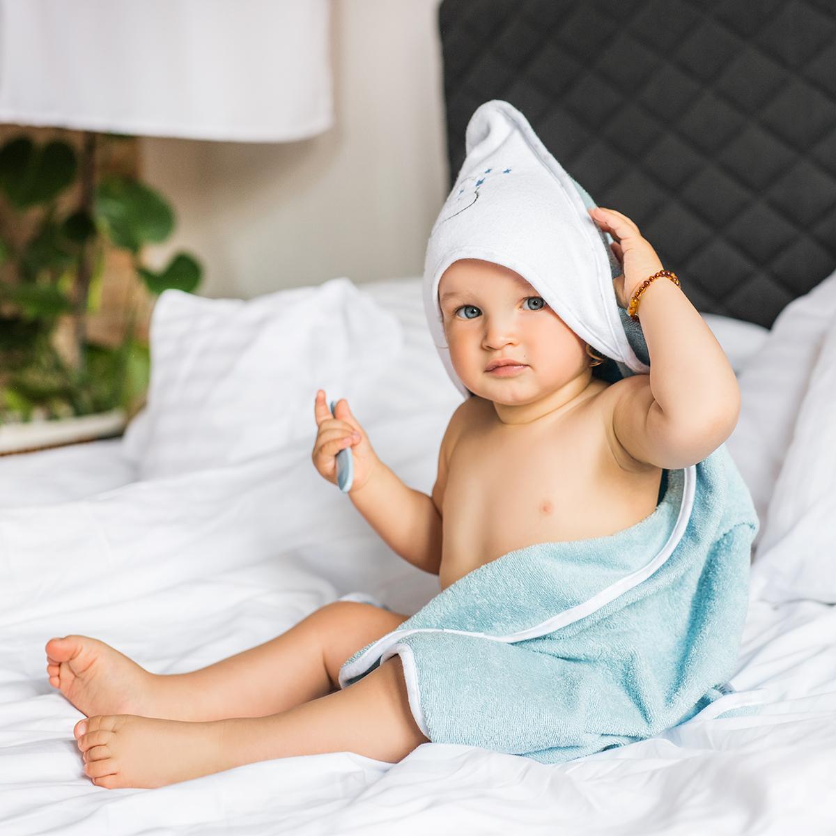 Рушник махровий з капюшоном "76х76" (Блакитний) "Хмаринки" Рушник для купання TERRY з капюшоном незамінний з першої ванни. Він виготовлений з високоякісної, м’якої 100% бавовни TERRY, чудово вбирає воду. Рушник відмінно вбирає вологу і забезпечує ефективний захист від холоду для ніжної шкіри вашої дитини. Для зручності дитини капюшон на дні вистелений додатковим шаром матеріалу. Рушничок упакований у прозорий мішок, скріплений прес-шпильками. ОСОБЛИВОСТІ: