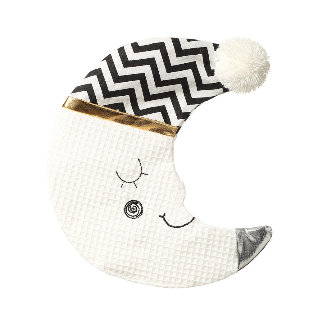 Обіймашка з шурхотінням для малюків "Сплячий місяць" (18*21 см) "BabyOno" Сплячий місяць - приємна обіймашка, шелестлива іграшка для вашого чудового малюка та частина колекції ПІДМОРГНИ&ПОСМІХНИСЬ, створена з урахуванням як дітей, так і їхніх батьків. Іграшка ідеально підходить для стискання, штовхання, кусання, притягування фокусуючої уваги, соковитих поцілунків, обіймів і сну. ПІДМОРГНИ&ПОСМІХНИСЬ - заклик до мами і тата - посміхніться! У певних ситуаціях достатньо показати язика, а для дитини це означає посилення позитивних емоцій - радості, посмішки та усмішки назад. Золоті та срібні елементи ідеально поєднуються з чорно-білими кольорами, привертаючи увагу дітей, допитливих до світу з перших днів життя. Важливим для розвитку зосередженості уваги дітей та здатності бачити різні предмети є колір. Протягом перших 3 місяців життя новонароджена дитина бачить чорно-білі предмети лише в безпосередній близькості. Лише в найближчі місяці він починає бачити і розпізнавати кольори; у віці 12 місяців зображення вже чітке і барвисте, але повний розвиток зору досягається, коли дитині виповниться 2 роки. Пізнавальну цінність надають різні фактури матеріалів: пухнастий і оксамитовий помпон, плавний і контрастний малюнок, м’яке, прохолодне і блискуче покриття, що видає звук при натиранні рукою. Вся композиція доповнена натуральною бавовняною тканиною.