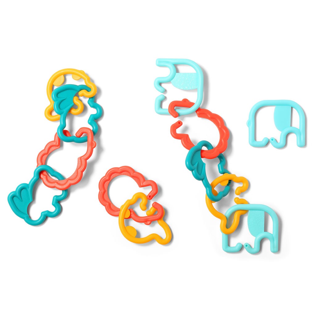 Ланцюжок "Тримай та грайся" (12 елементів) "BabyOno" Пластикові елементи LINK 'N' Play спеціально розроблені для розвитку уяви дитини. Їх можна легко комбінувати для створення різноманітних тривимірних ланцюгів. 4 різні фігури та кольори спонукають дитину до захоплення та приєднання, задовольняючи потреби розвитку наймолодших у захопливій формі. Легкий, простий в чищенні і виготовлений з безпечних матеріалів. Ідеально підходить для автокрісла, коляски, дитячого ліжка та високого стільця. ОСОБЛИВОСТІ: