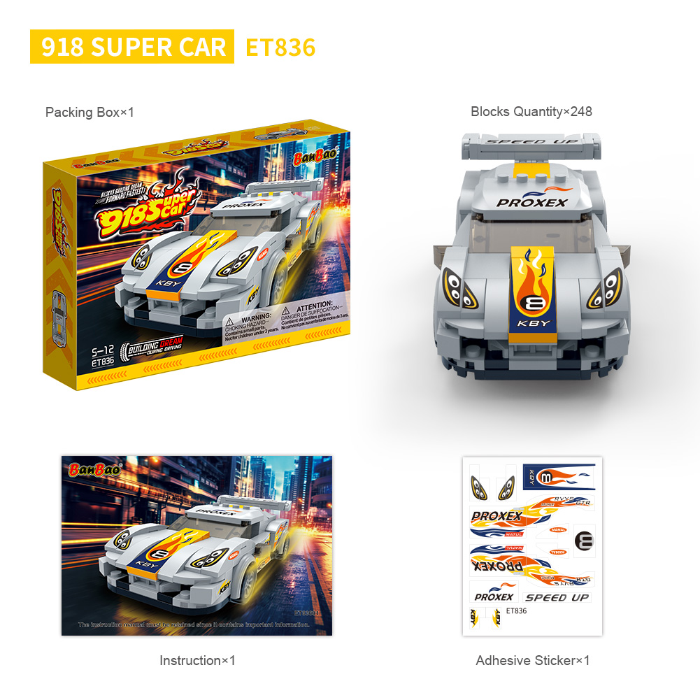 Конструктор "Швидкісні гонки" (248 елм.) Супер авто/BanBao Готові до адреналіну? Конструктор BanBao “Швидкісні гонки” запрошує дітей у світ драйву, швидкості та змагань! Збери своє авто, продумай стратегію та першим перетни фінішну лінію.