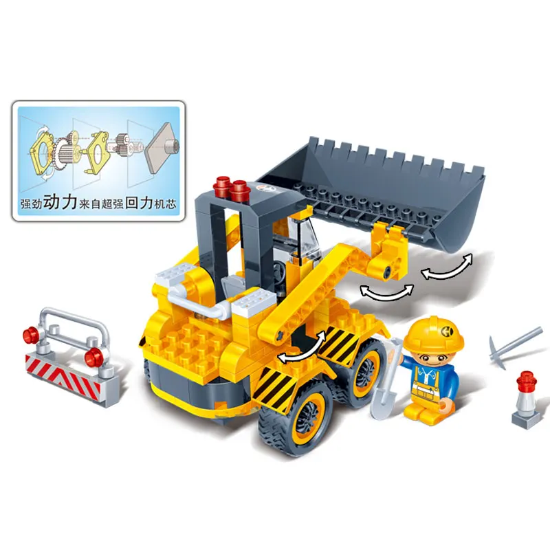 Конструктор "Будівельна техніка" (103 елм.) Навантажувач Пластиковий конструктор BanBao "Будівельна техніка" - це невеликі будівельні блоки за допомогою різних комбінацій і уяви Вашої дитини перетворюються в чудові предмети. "Міні навантажувач маневрений і швидкий, що є перевагою на складних будівельних об'єктах. Ще одна його важлива перевага - функціональність, ківш цієї машини згодиться для вирішення безлічі різноманітних завдань на будівництві." В процесі захоплюючої гри дитина зможе комбінувати різні деталі і розігрувати цікаві сюжети. Захоплюючий ігровий процес прекрасно розвиває моторику рук, логічне та образне мислення, увагу і сприяє виробленню певної посидючості, яка стане в нагоді дитині в школі. Всі деталі конструктора виготовлені з нетоксичних, нешкідливих для здоров'я дитини і довкілля матеріалів.