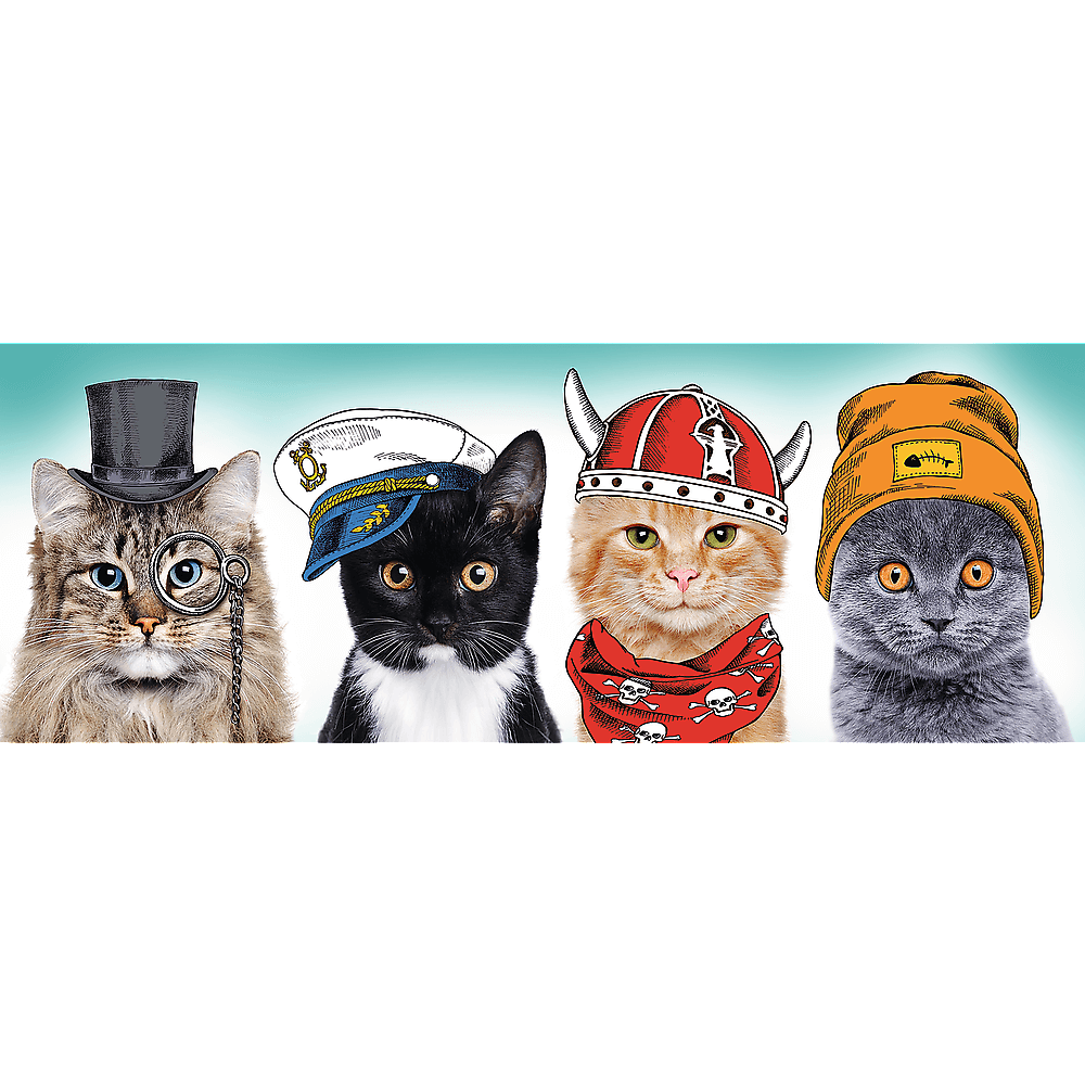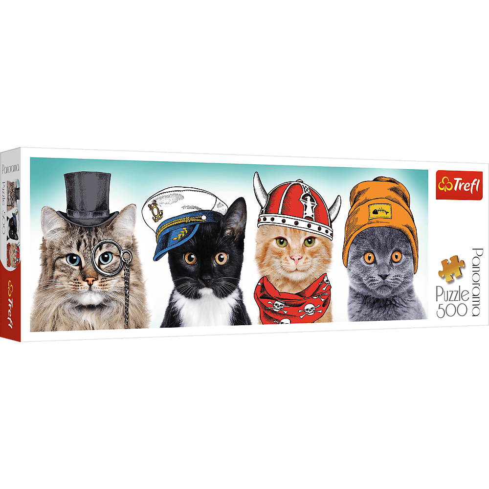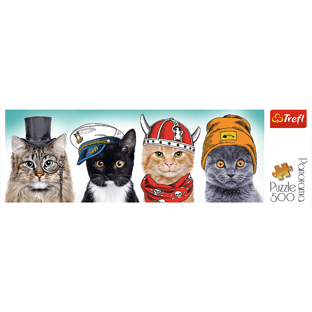 Пазли - (500 елм.) Панорама - "Пухнаста команда" Панорамний пазл з 500 деталей, що зображає Пухнасту команду котиків. Після складання буде створена картинка розміром 660 х 237 мм. Виріб виготовлено з якісних матеріалів із застосуванням спеціального каландрового світловідбиваючого паперу, який полегшує складання.