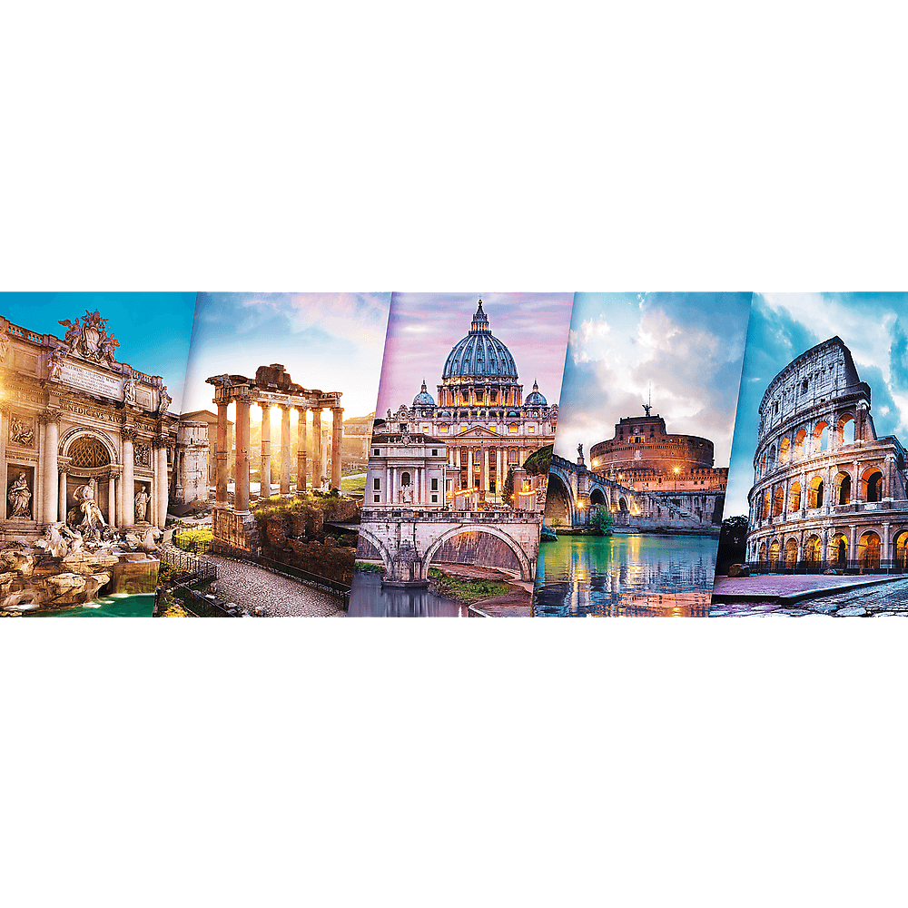 Пазли - (500 елм.) Панорама - "Подорож Італією" Панорамний пазл з 500 деталей, що зображає Подорож Італією. Після складання буде створена картинка розміром 660 х 237 мм. Виріб виготовлено з якісних матеріалів із застосуванням спеціального каландрового світловідбиваючого паперу, який полегшує складання.