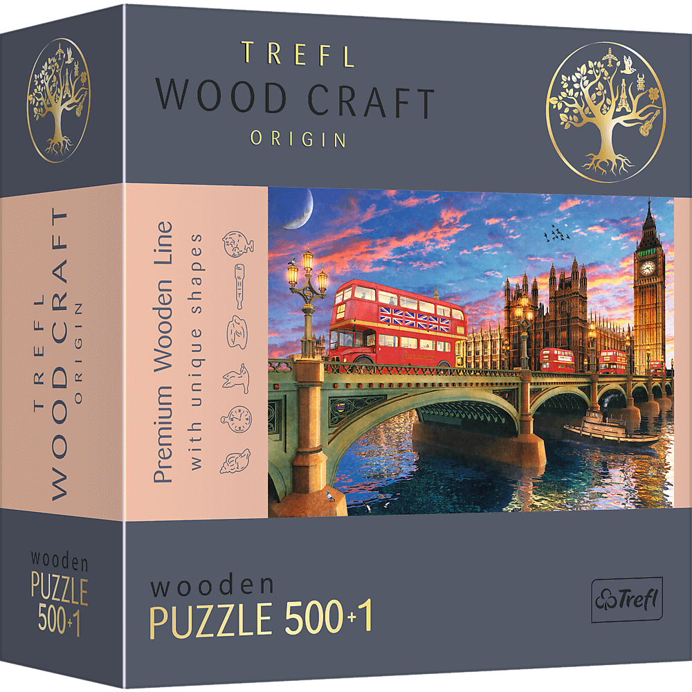 Пазли фігурні з дерева на 500 + 1 елм "Вестмінстерський палац, Біг-Бен, Лондон" Серія пазлів 500+ 1 штука, ідеально підходить для всіх любителів пазлів, вона дозволить створити картину розміром 37,5 х 25,4 см із зображенням Вестмінстерського палацу, Біг-Бену, Лондона.Пазл виготовлений з дерева, а екологічно чиста упаковка повністю з картону.Пазли містять неправильні частини та 50 фігур у формі тварин.Пазл можна також складати на зворотню сторону. Складніший варіант головоломки, тому що нанесений чорно-білий орнамент.