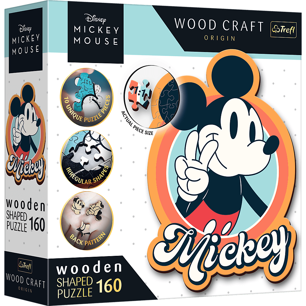 Пазли фігурні з дерева - (160 елм.) - "Дісней - Ретро Міккі" / Trefl Дерев'яний пазл "Дісней - Ретро Міккі" - унікальна пропозиція для шанувальників казок Disney. Ці атмосферні пазли складаються з 160 елементів , включаючи 10 унікальних фігурок пазлів, що відсилають до світу Міккі Мауса. Пазл виготовлений з дерева, а упаковка виготовлена з екологічно чистого картону.Пазли створені для всіх шанувальників головоломок, які шукають нових випробувань і для тих, хто шукає цікавий спосіб відпочити.
