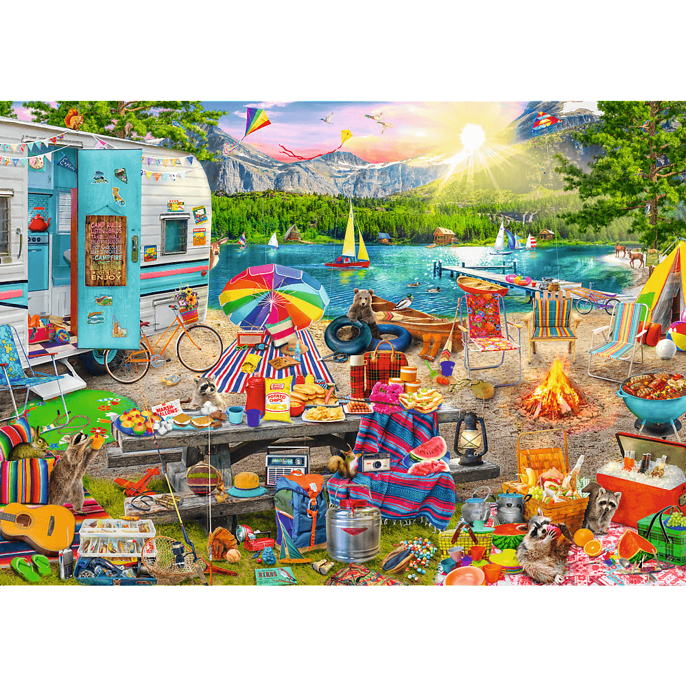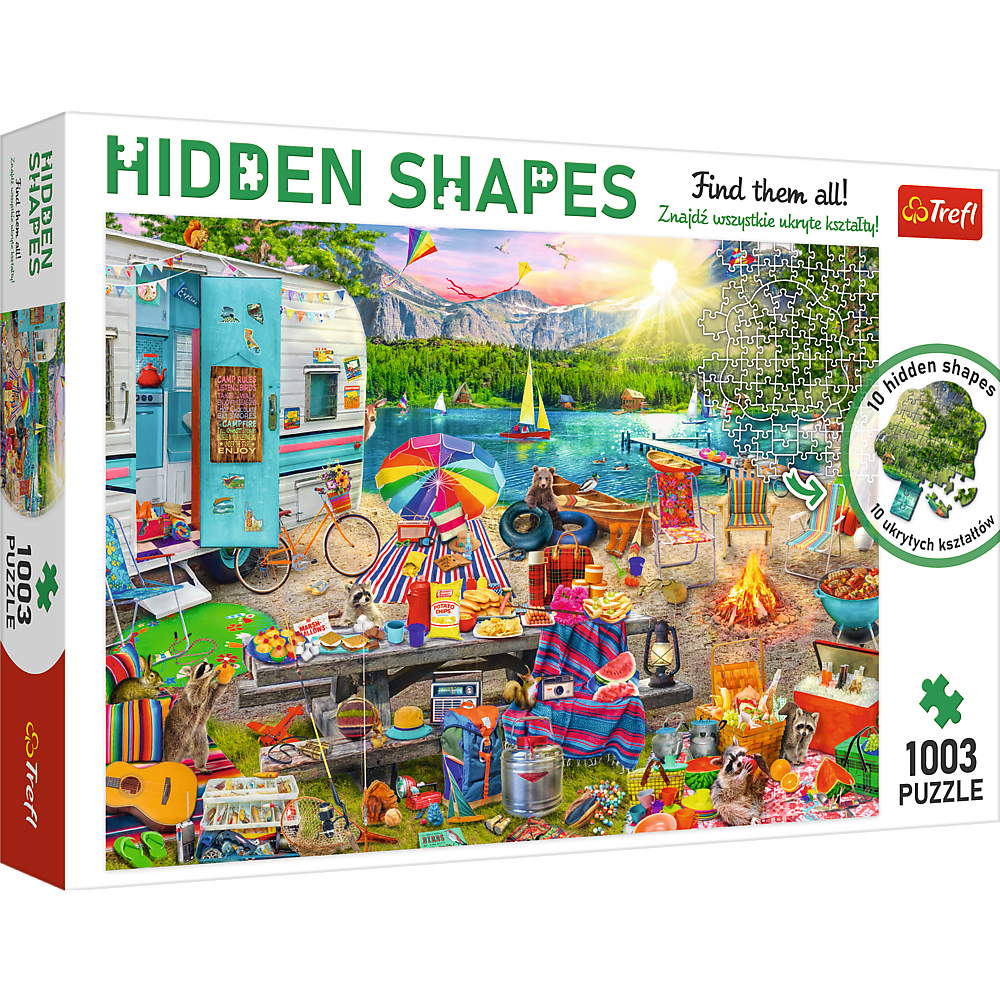 Пазли - (1003 елм.) - Приховані пазли: "Поїздка на фургуні" Серія прихованих форм - це подвійна доза веселощів. Помістіть головоломки і відкрийте приховані форми. Поїздка на кемпер приховує 10 унікальних форм, які видно лише після розміщення головоломки. Веселіться і знайдіть їх усіх! Після прокладки буде створено зображення з розміром 683x480 мм. Головоломки призначені для дорослих чи дітей старше 14 років.
