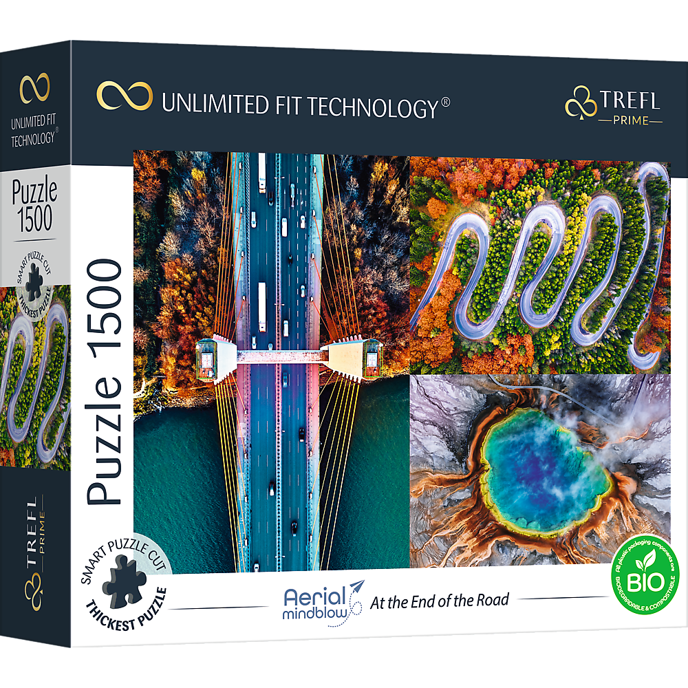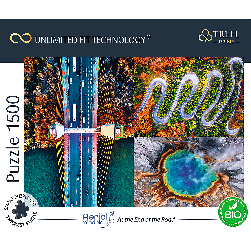 Пазли - (1500 елм.) - Безмежна колекція: "В кінці дороги" Головоломки з серії Trefl Prime Unlimited Fit Technology, що складається з 1500 елементів, присвячені справжнім любителям головоломки. Головоломки показують погляди в кінці дороги. Після прокладки буде створено зображення розміром 850x580 мм. Головоломки були виготовлені з високоякісних матеріалів, використовуючи найгустіший картон, унікальні форми та спеціальний метод різання. Завдяки цьому ми можемо створити індивідуальний колаж і легко перемістити всю головоломку. Крім того, окремі елементи продукції UFT виготовлені з екологічних матеріалів. Сумка жолоба та наклейки на коробці були виготовлені з біологічно розкладаної фольги. Продукти не загорнуті в теплову фольгу.