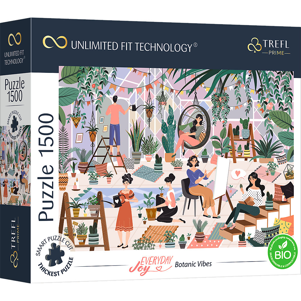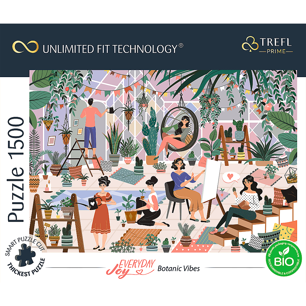 Пазли - (1500 елм.) - Безмежна колекція: "Ботанічний сад" Пазли із серії Trefl Prime Unlimited Fit Technology, що складається з 1500 елементів, ідеально підійдуть справжнім фанатам головоломок! На пазлах зображені люди, які відпочивають у ботанічному саду . Після укладання вийде малюнок розміром 850х580 мм.Пазли виготовлені з високоякісних матеріалів з використанням найщільнішого картону, унікальних форм і особливого способу вирізання. Завдяки цьому ми можемо створити індивідуальний колаж і легко переміщати пазл. Крім того, окремі елементи виготовлені з екологічних матеріалів. Розрядний пакет і наклейки виготовлені з біорозкладаної фольги. Вироби не упаковані в термоусадочну упаковку.