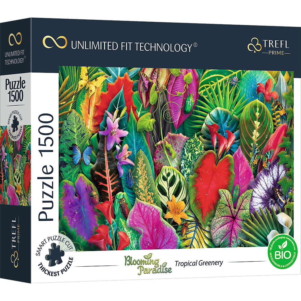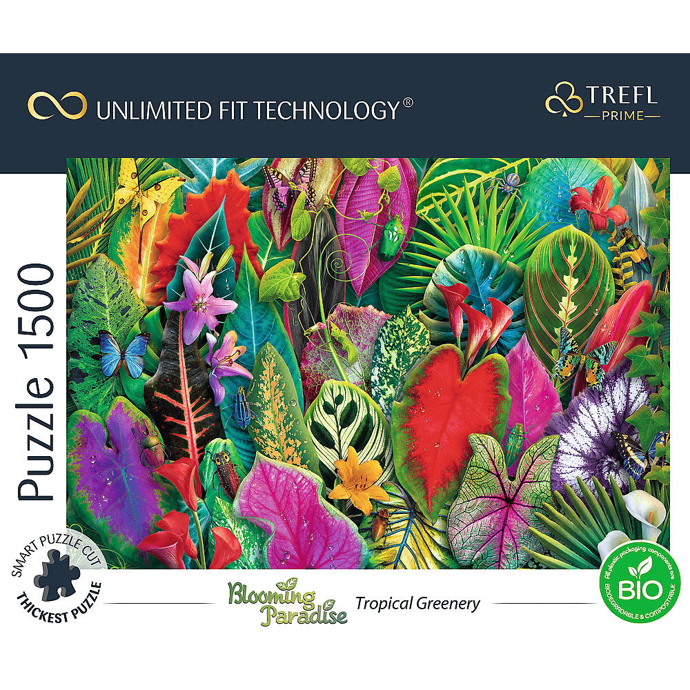 *Пазли - (1500 елм.) - Безмежна колекція: "Тропічний сад" / Trefl Пазли серії Trefl Prime Unlimited Fit Technology, що складаються з 1500 елементів, ідеально підійдуть справжнім фанатам головоломок! На пазлах зображена екзотична рослинність . Після аранжування буде створено зображення розміром 850х580 мм.Пазли виготовлені з високоякісних матеріалів з використанням найщільнішого картону, унікальних форм і особливого способу вирізання. Завдяки цьому ми можемо створити індивідуальний колаж і легко перенести пазл. Крім того, окремі елементи виготовлені з екологічних матеріалів. Сумка для жолоба та наклейки виготовлені з біорозкладаної фольги. Вироби не упаковані в термоусадочну упаковку.