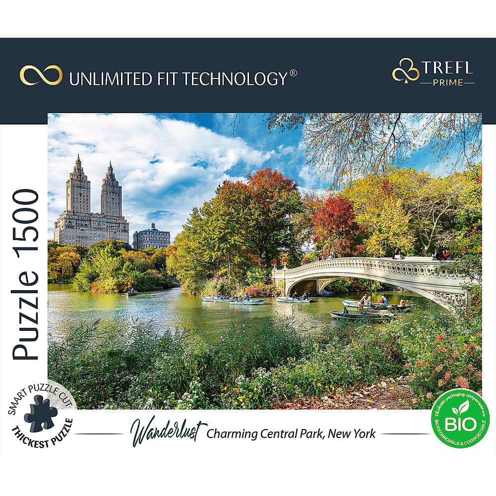 Пазли - (1500 елм.) - Безмежна колекція: "Чудовий Центральний парк, Нью-Йорк" Головоломки з серії Trefl Prime Unlimited Fit Technology, що складається з 1500 елементів, присвячені справжнім любителям головоломки. Головоломка зображує Центральний парк у Нью -Йорку. Після прокладки буде створено зображення розміром 850x580 мм. Головоломки були виготовлені з високоякісних матеріалів, використовуючи найгустіший картон, унікальні форми та спеціальний метод різання. Завдяки цьому ми можемо створити індивідуальний колаж і легко перемістити всю головоломку. Крім того, окремі елементи продукції UFT виготовлені з екологічних матеріалів. Сумка жолоба та наклейки на коробці були виготовлені з біологічно розкладаної фольги. Продукти не загорнуті в теплову фольгу.