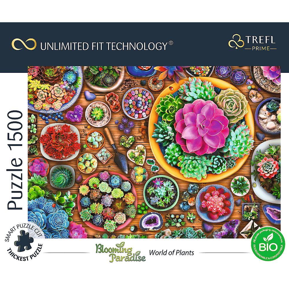 *Пазли - (1500 елм.) - Безмежна колекція: "Світ рослин" / Trefl Пазли серії Безмежна колекція: "Світ рослин", що складаються з 1500 елементів, ідеально підійдуть справжнім фанатам головоломок! На головоломці зображені рослини на столі . Після аранжування буде створено зображення розміром 850х580 мм.Пазли виготовлені з високоякісних матеріалів з використанням найщільнішого картону, унікальних форм і особливого способу вирізання. Завдяки цьому ми можемо створити індивідуальний колаж і легко перенести пазл. Крім того, окремі елементи виготовлені з екологічних матеріалів. Сумка для жолоба та наклейки виготовлені з біорозкладаної фольги. Вироби не упаковані в термоусадочну упаковку.