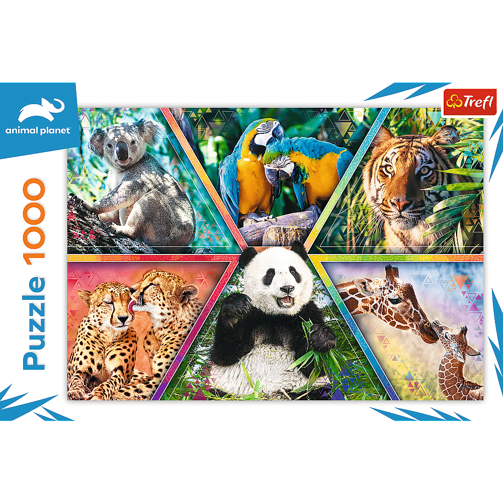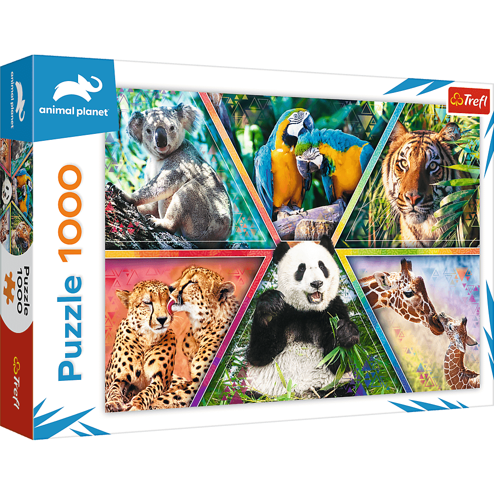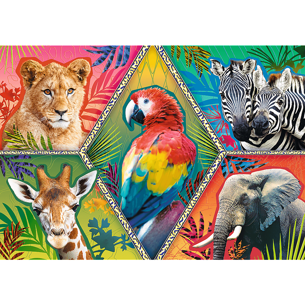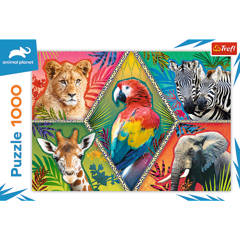 Пазли - (1000 елм.) - "Екзотичні тварини" Пазл із 1000 деталей із зображенням екзотичних тварин. Після складання буде створена картина розміром 683х480 мм.Виріб виготовлено з високоякісних матеріалів, із застосуванням спеціального світловідбиваючого паперу, що полегшує його укладання. Виріб виготовлено в Польщі, а для виготовлення використані екологічні матеріали.