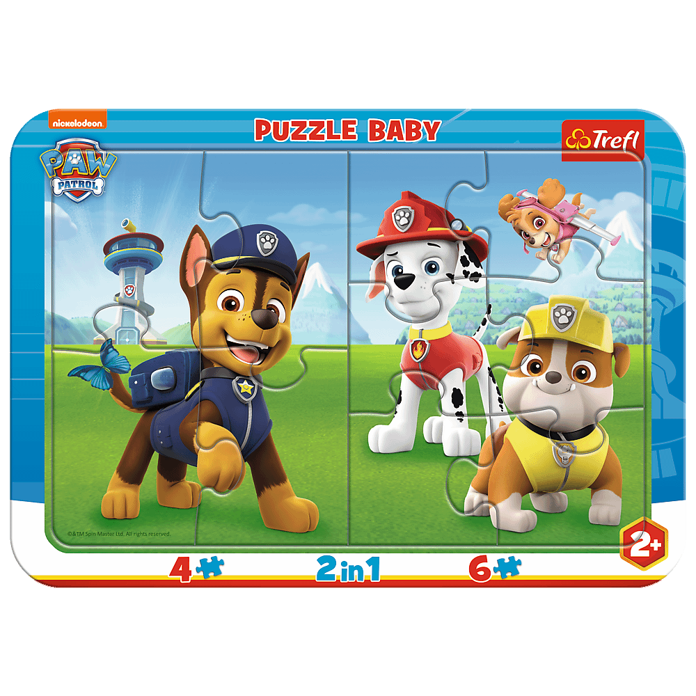 Пазли - (10 елм.) 2в1 рамкові "Веселий патруль" / "Щенячий патруль" Два прогресивних пазла для вашої малечі. Коли складете пазли і візьмете їх у рамку, вони утворять одну велику картину. Спочатку дитина збирає 4 елементи, а коли підросте може скласти і другу частину з 6 елементів. Якщо помістити дві частини в рамку, то отримаєте одну велику картинку.Щоб уяву тренувати, треба пазли всім складати!Розмір скаденої картинки в рамці - 285х190 мм